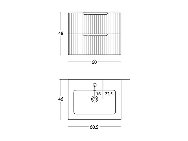 Version Vitrée Lynea À Nervures, Finition Gris Foncé, 2 Tiroirs Et Lavabo Central