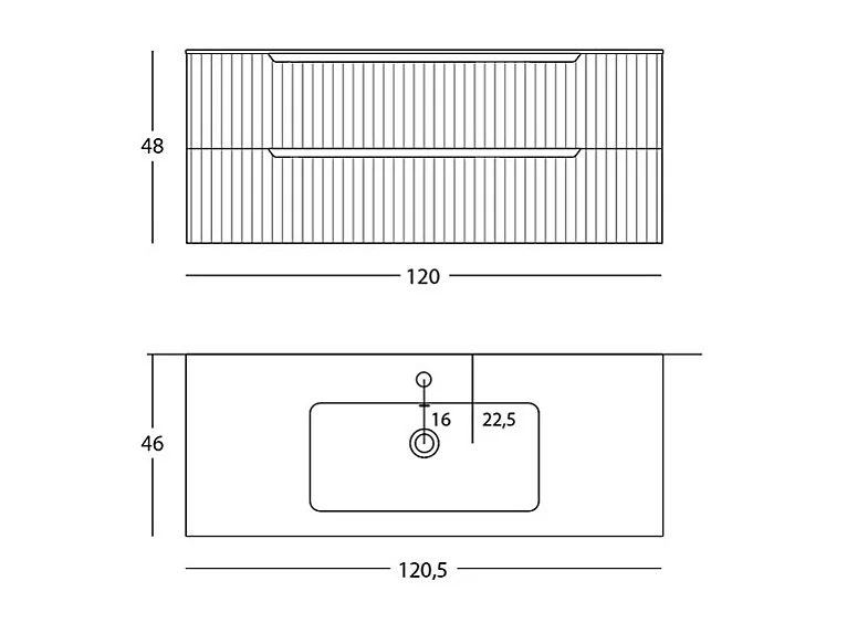 Version Vitrine De Salle De Bain Lynea À Nervures, Finition Gris Clair, 2 Tiroirs Et Lavabo Central