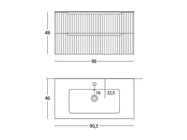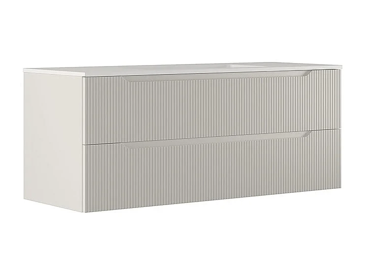 Version Vitrine De Salle De Bain Lynea À Nervures, Finition Gris Clair, 2 Tiroirs Et Lavabo Central