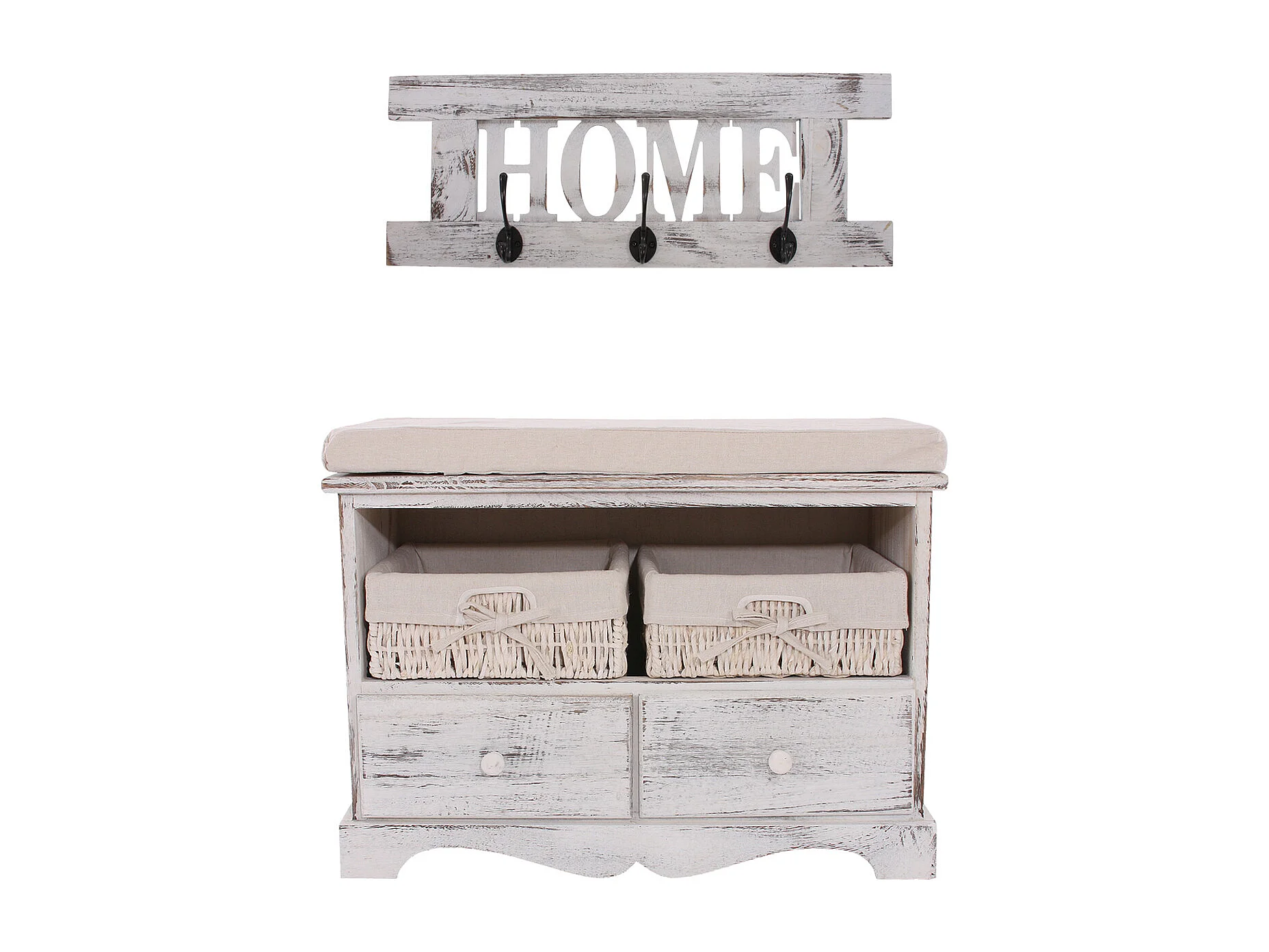 Vestiaire avec banc Shabby (4 pièces), blanc