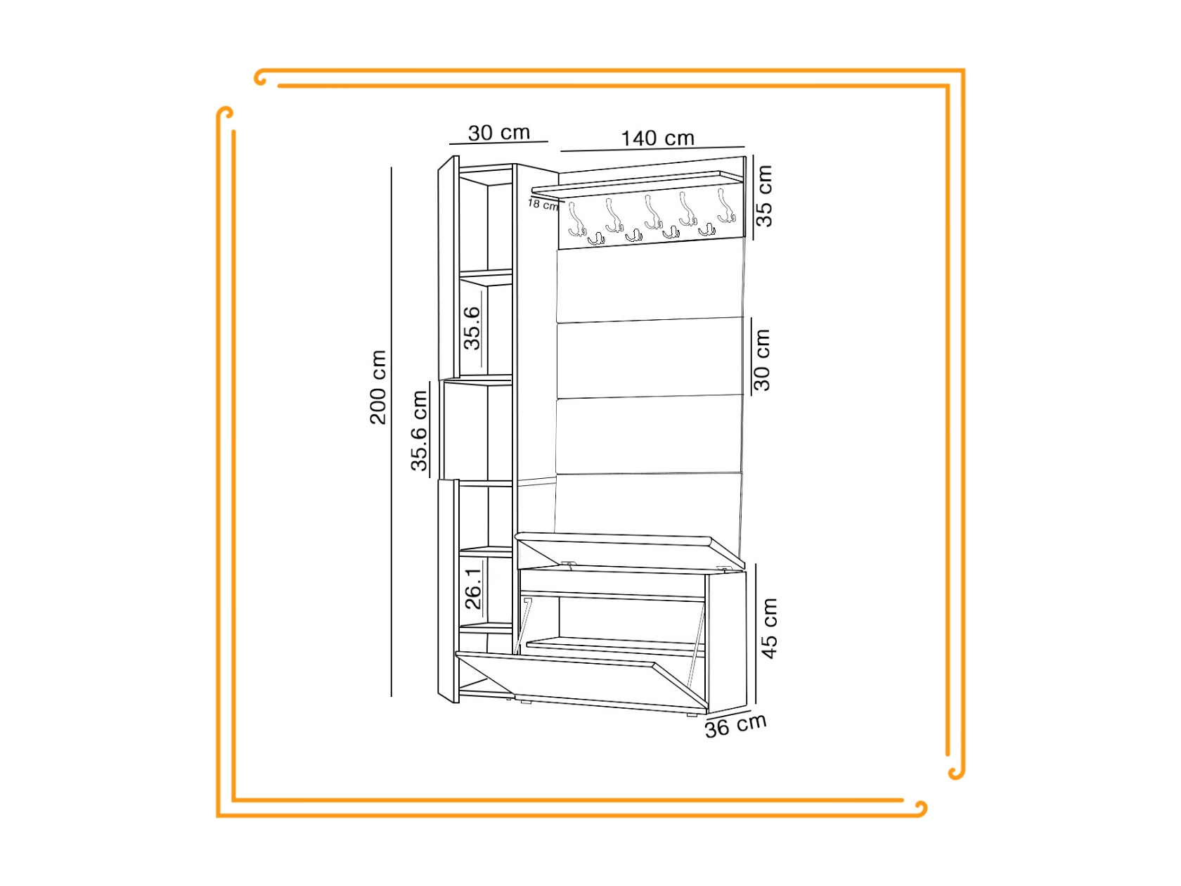 Vestiaire d’entrée avec assise, patères et panneau rembourré – Chêne Sonoma