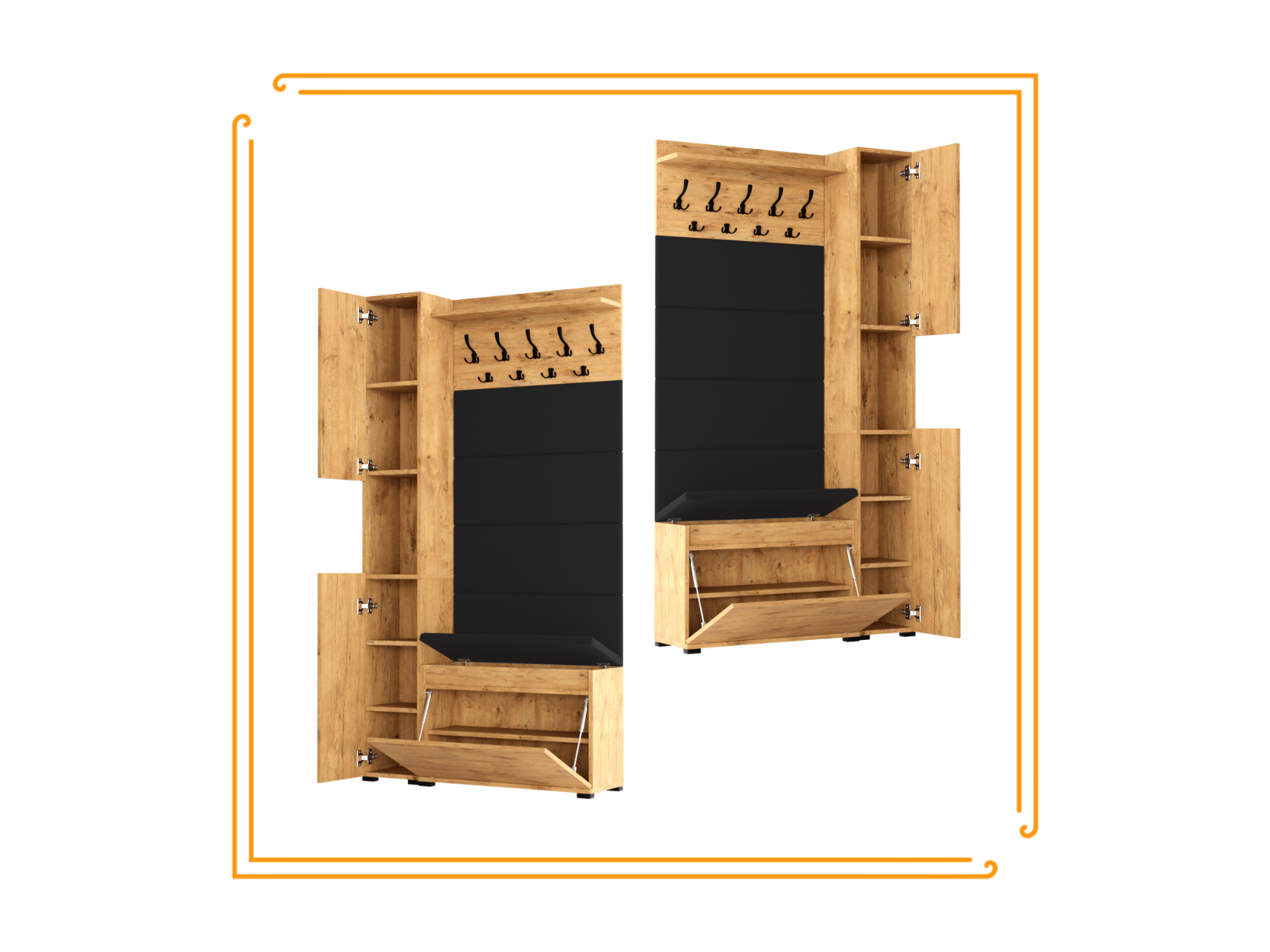 Vestiaire d’entrée avec assise, patères et panneau rembourré – Lancelot