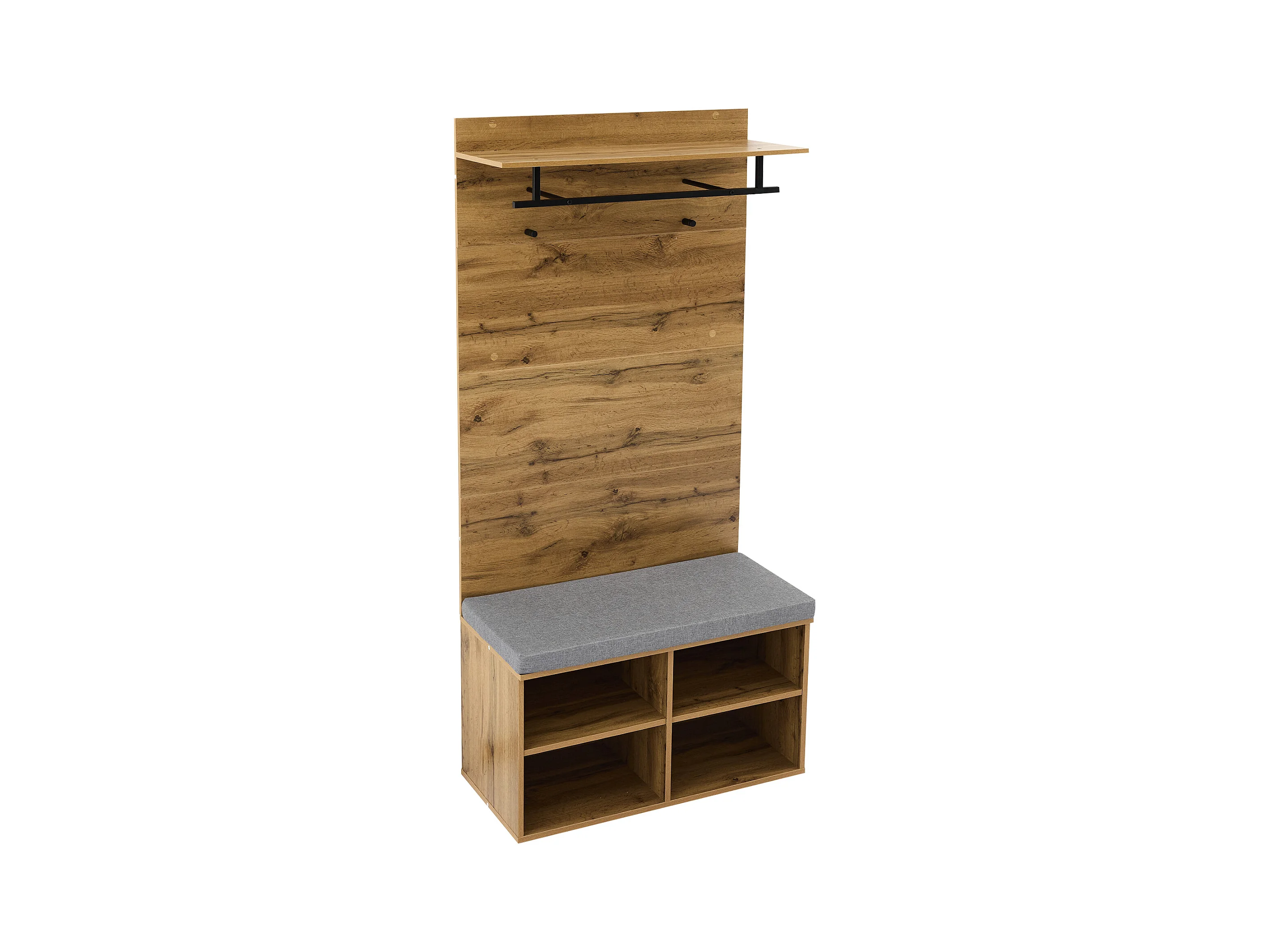 Vestiaire d'entrée chêne 104x190x39 cm avec miroir 1 porte 1 tiroir assise rembourrée rangement chaussures étagères et patères en bois