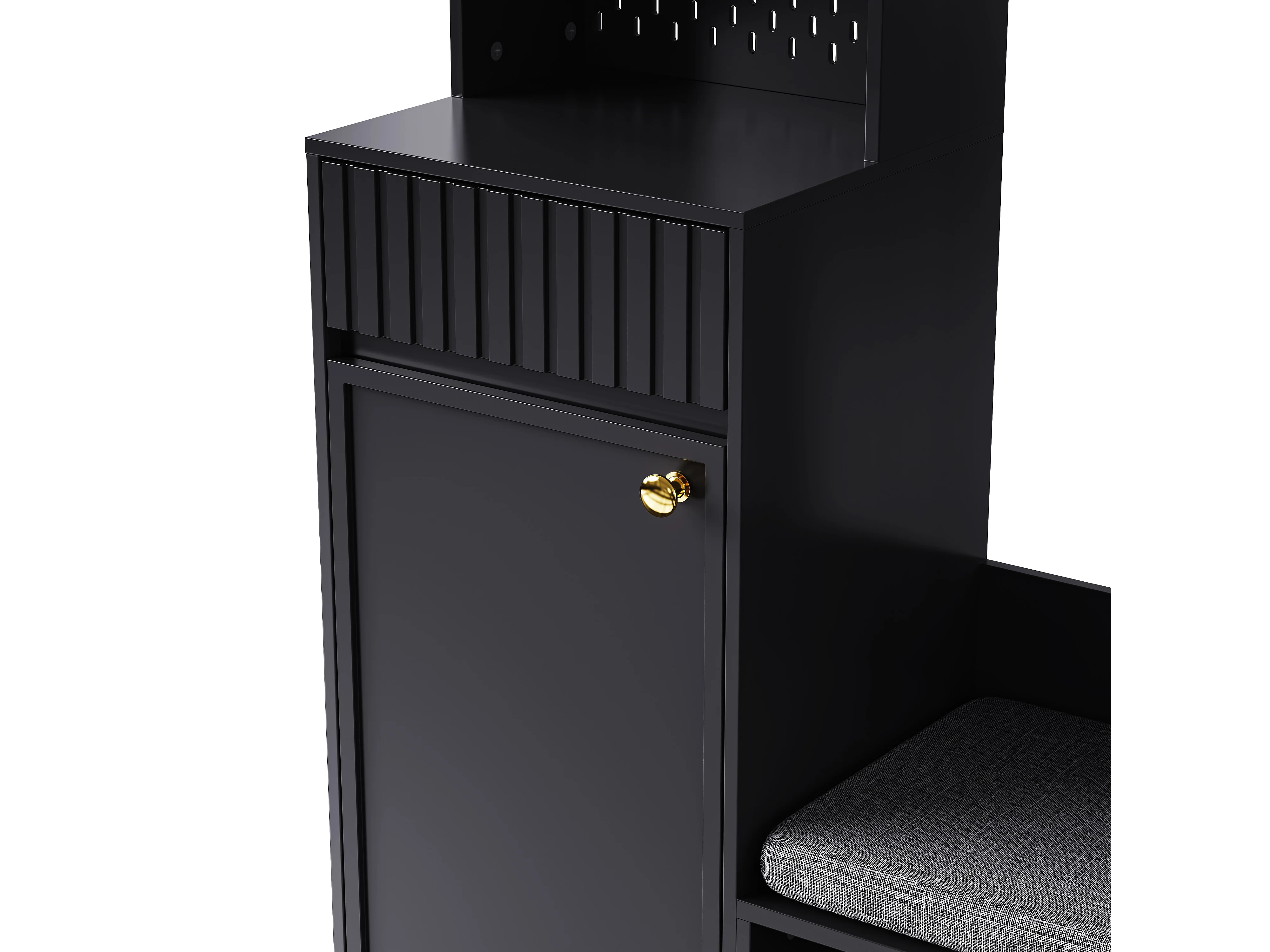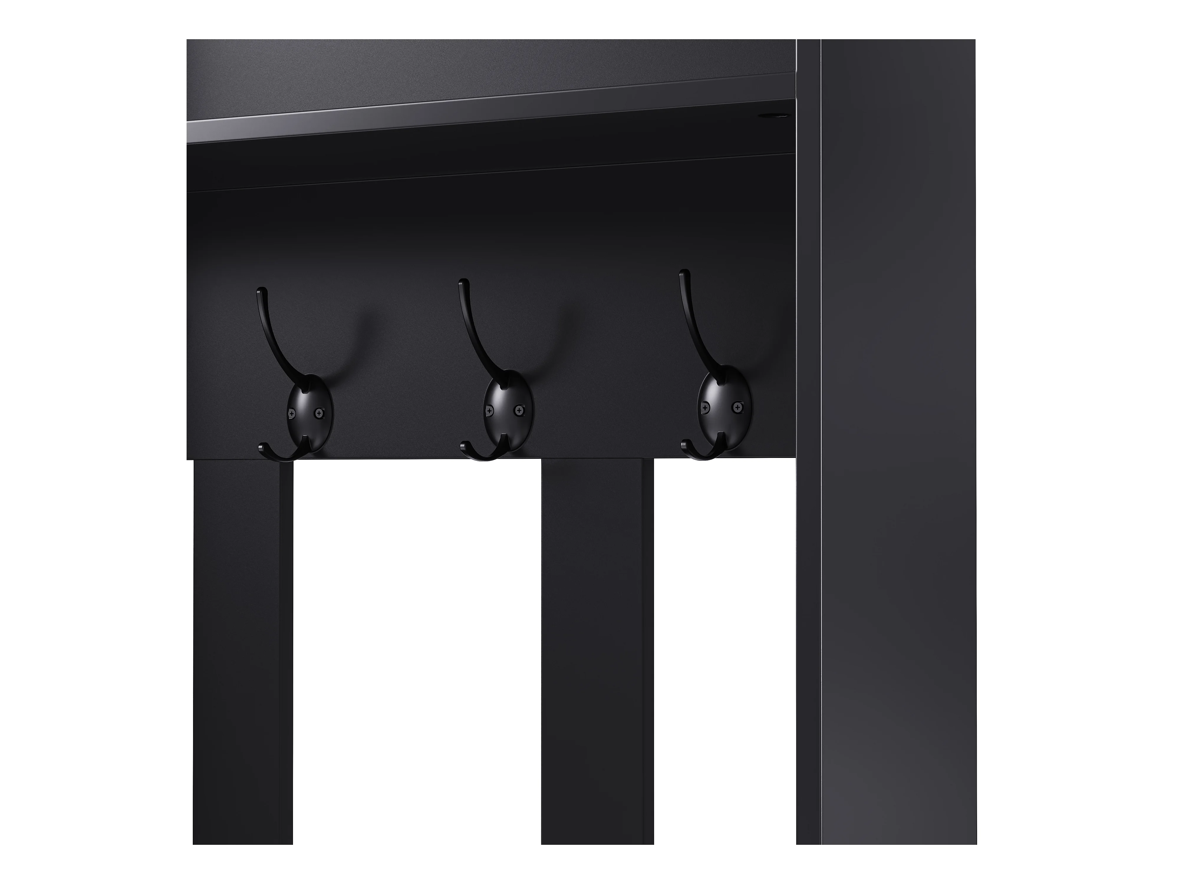 Vestiaire d'entrée moderne - avec 4 crochets, 2 portes et 1 tiroir - avec banc et étagères ouvertes - Noir