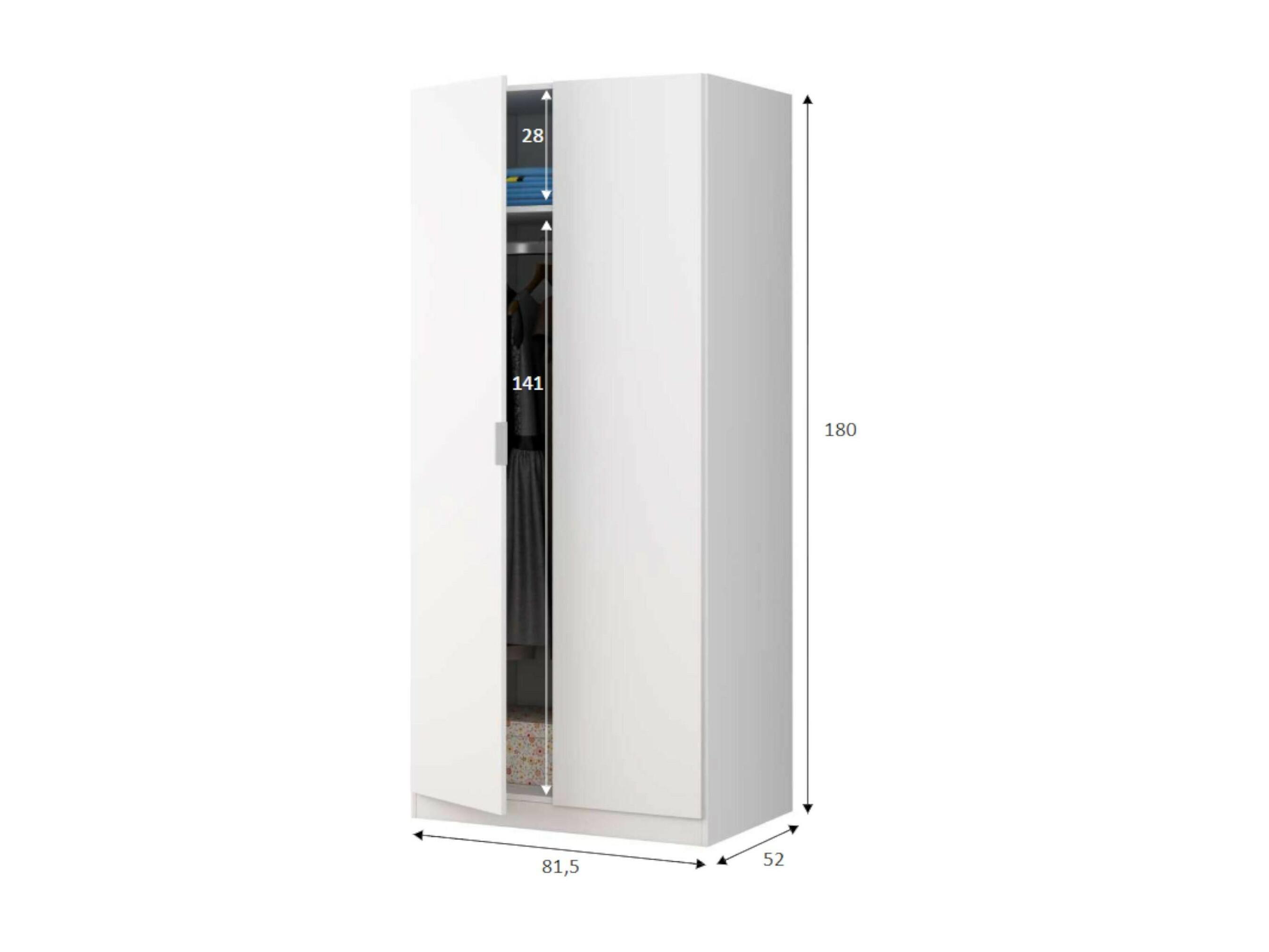 Armoire Knoxville, Armoire de chambre avec 4 portes battantes, Armoire avec 2 étagères et tringle à vêtements, 180x52h200 cm, Blanc