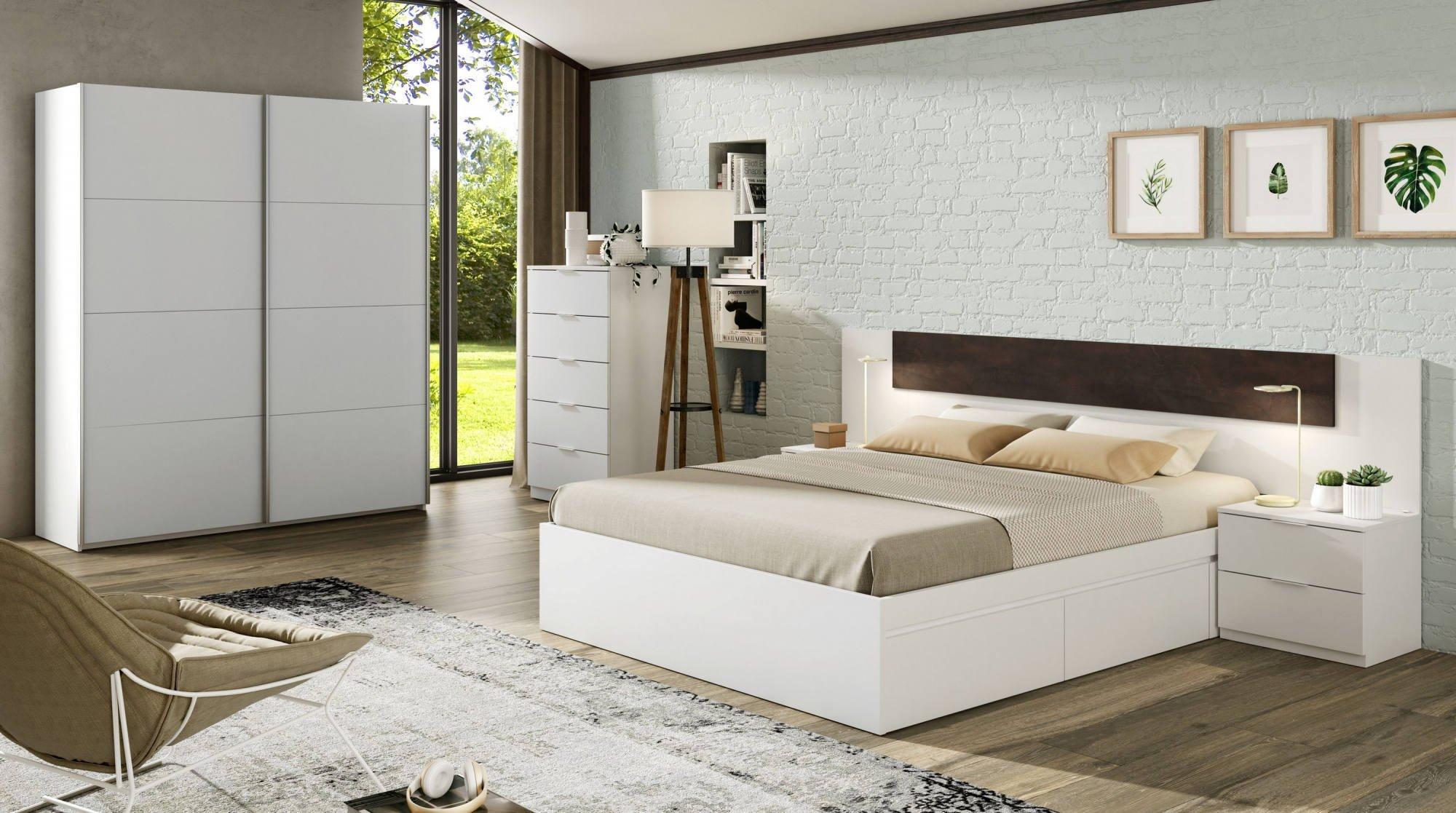 Armoire Dcioff, Armoire de chambre avec 2 portes coulissantes, Armoire avec tringle à vêtements et 3 étagères, 180X60h200 cm, Blanc et Chêne