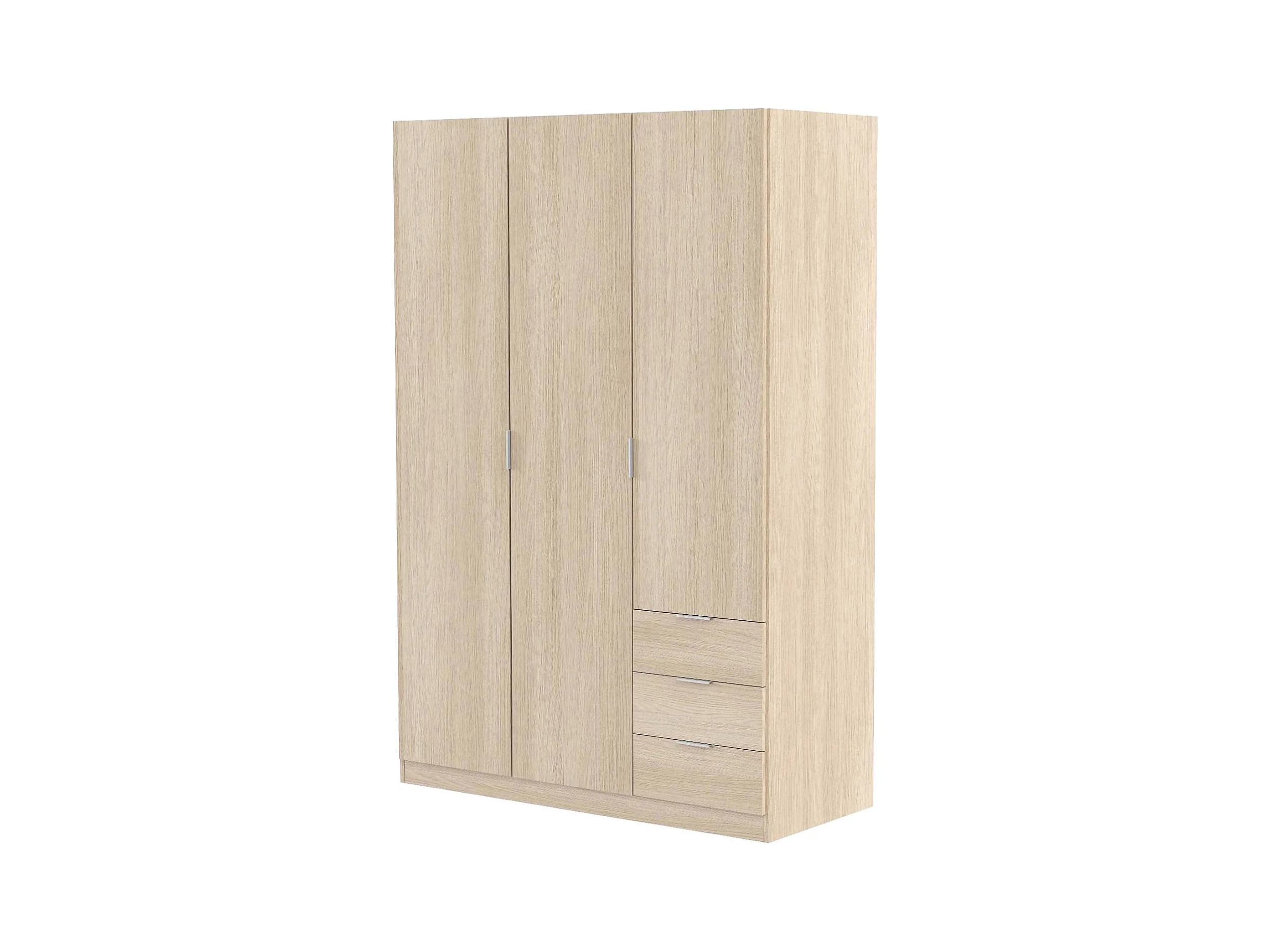 Armoire Dnespol, Armoire de chambre avec 3 portes et 3 tiroirs, Armoire avec 3 étagères et tringle à vêtements, 121x52h180 cm, Chêne