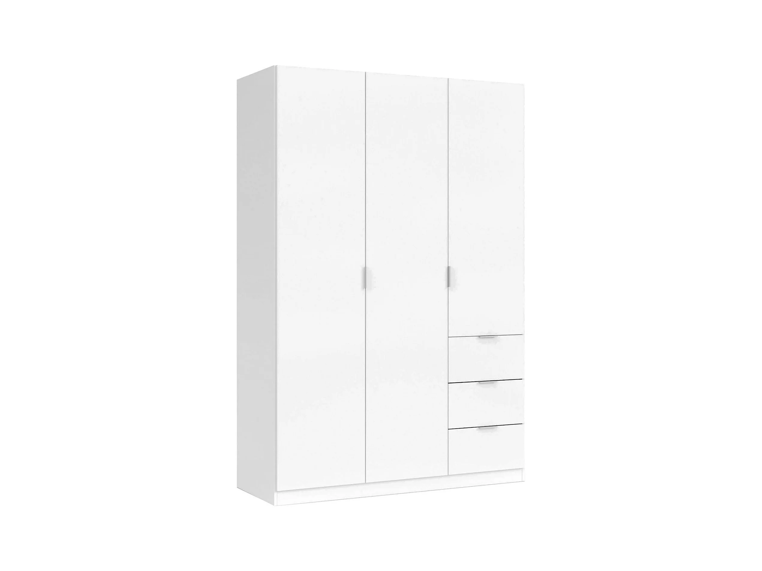 Armoire Fullerton, armoire de chambre à coucher avec 3 portes et 3 tiroirs, armoire avec 3 étagères et barre de suspension, 135x52h200 cm, blanc