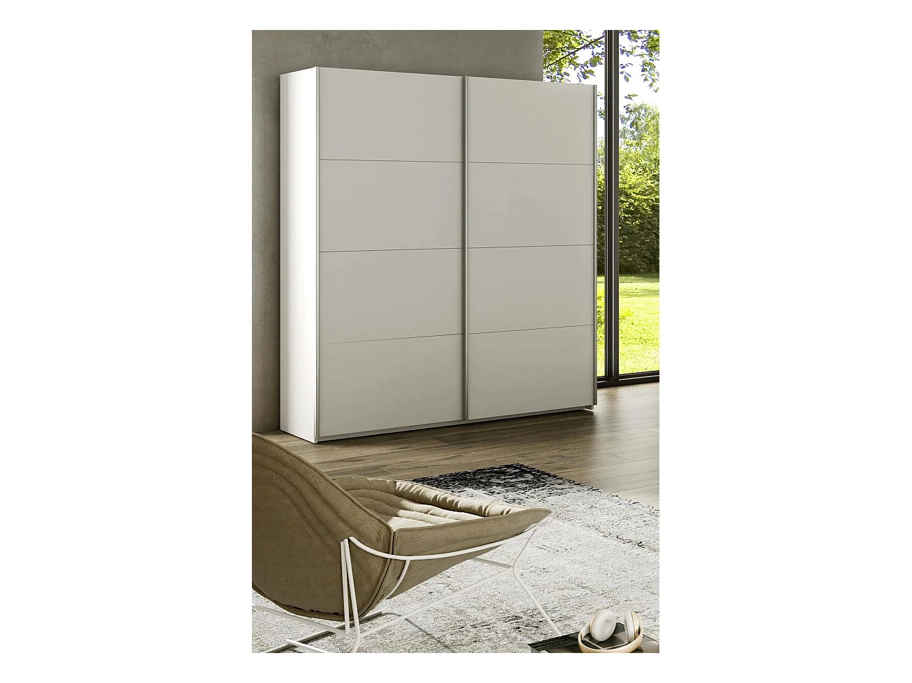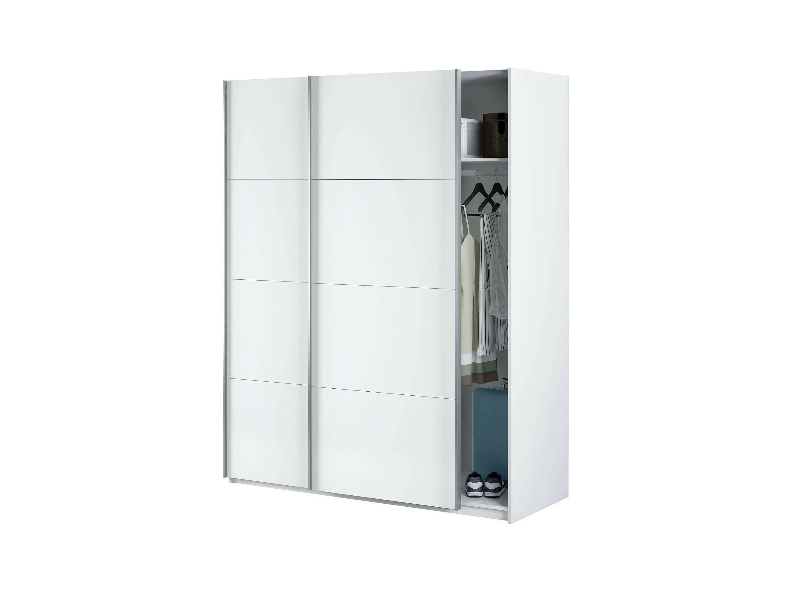 Armoire Dmace, Armoire de chambre avec 2 portes coulissantes, Armoire avec tringle à vêtements et 2 étagères, 150x60h200 cm, Blanc brillant