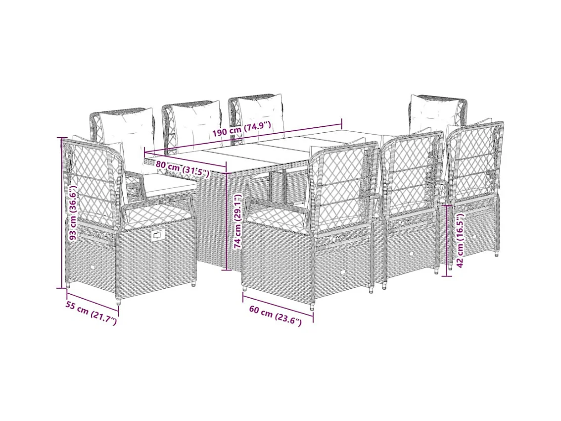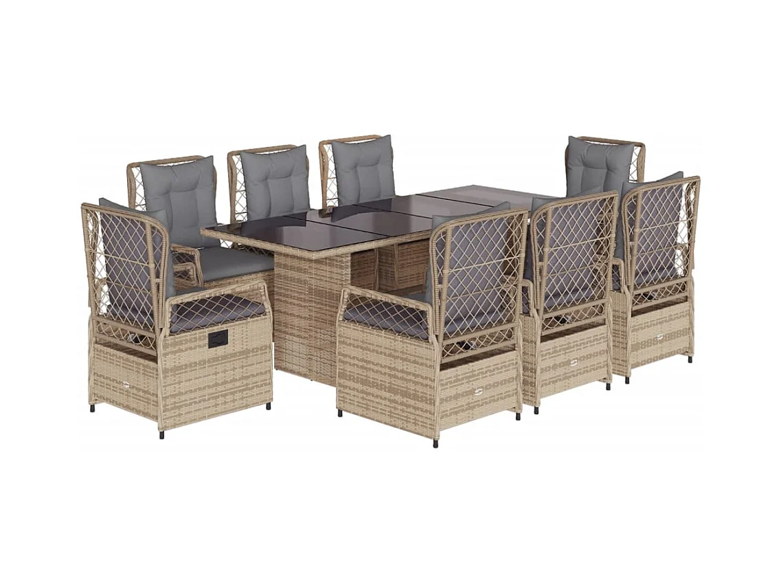 Anselm Ensemble à manger de jardin et coussins 9 pcs beige Poly rotin