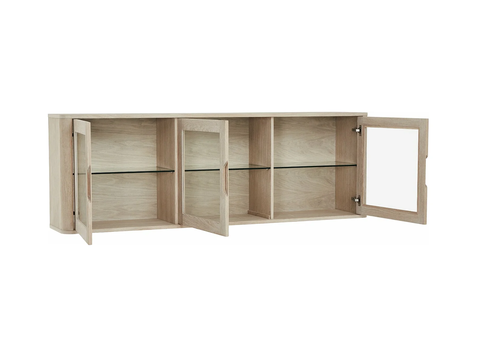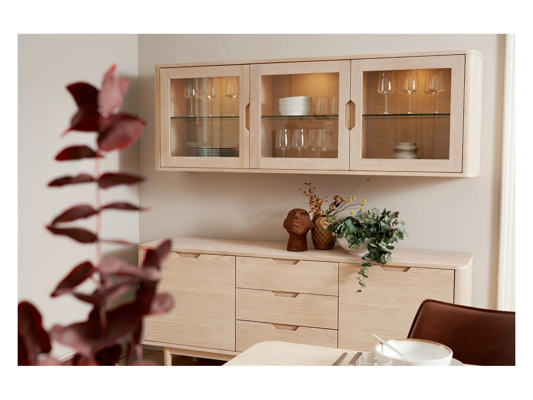 Vitrine murale Nyborg avec 3 portes et 3 niches - Chêne massif et MDF - huile blanche