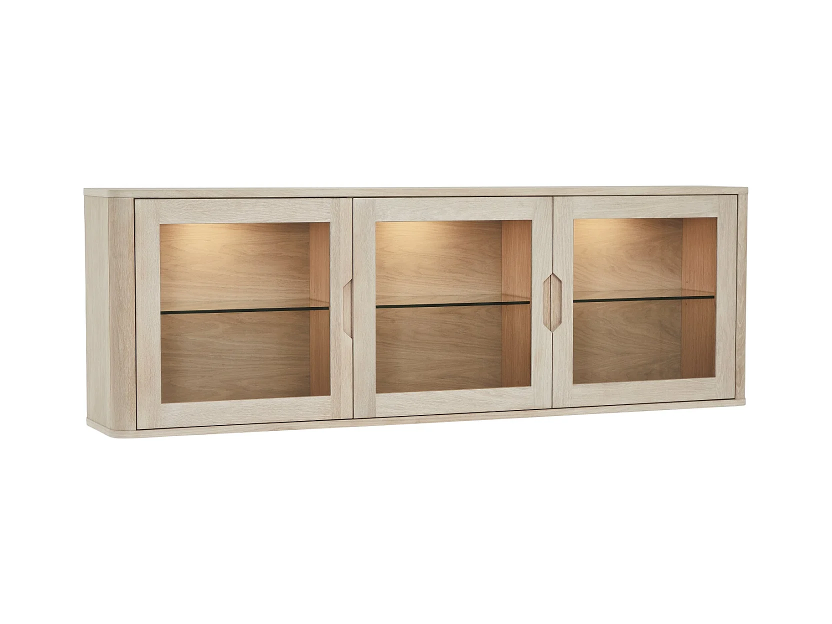 Vitrine murale Porto avec 3 portes et 3 niches - Chêne massif et MDF - huile blanche