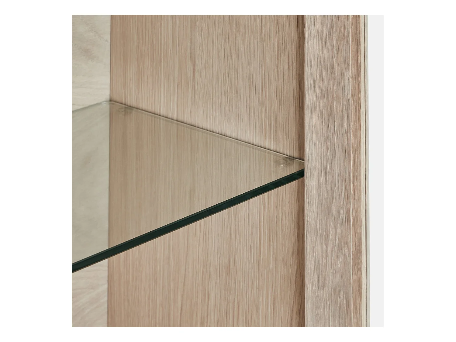 Vitrine, bibliothèque, vaisselier KILES coloris gris blanc et chêne. Modèle vitrine gauche. LED intégrée