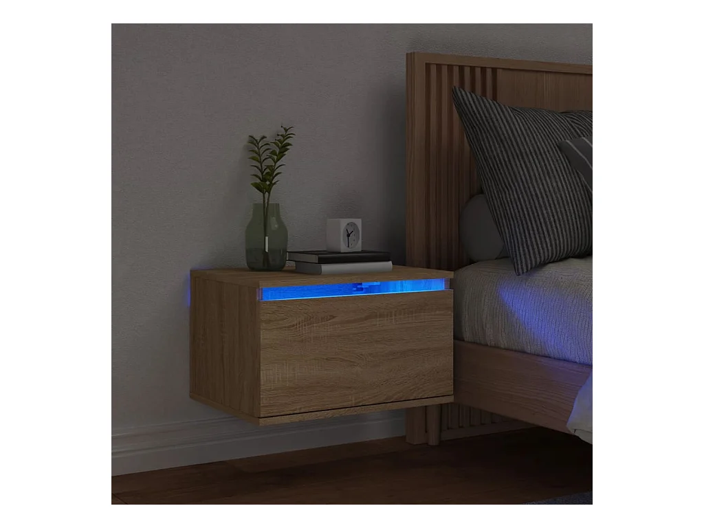 Vibeke Table de chevet murale avec lumières LED chêne sonoma