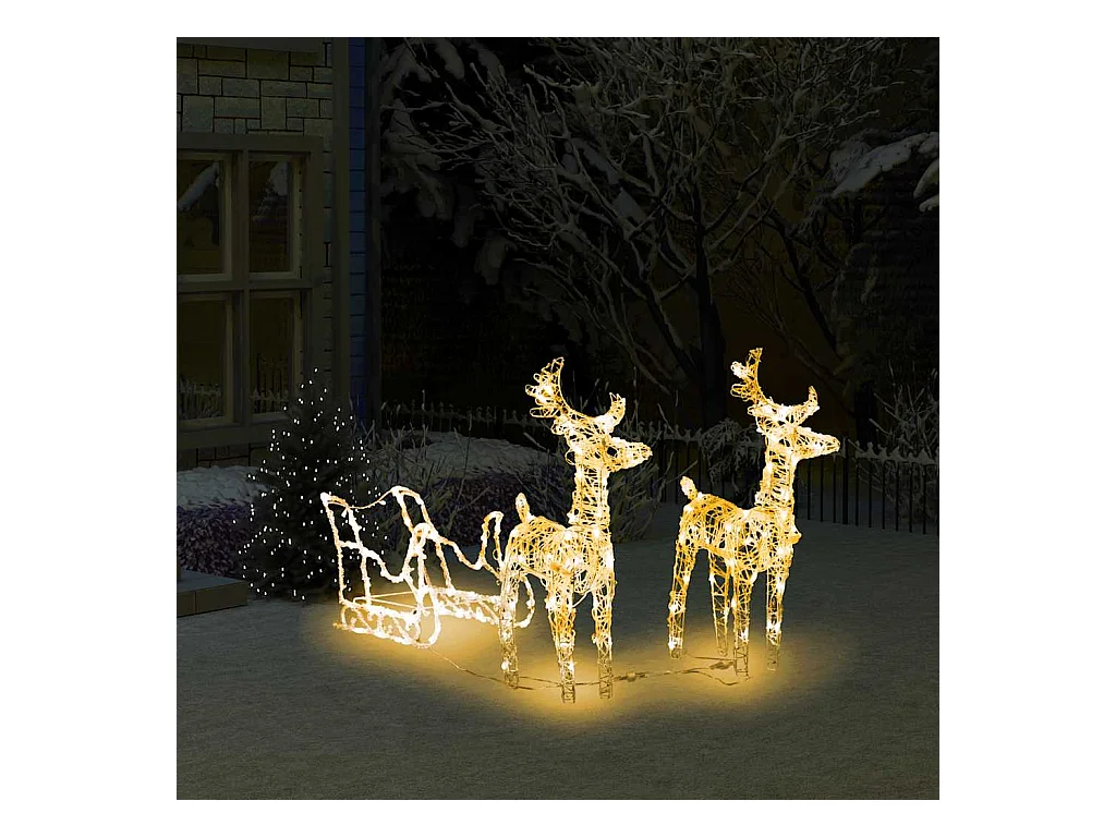 Décoration de Noël Rennes et traîneau 160 LED 130 cm Acrylique