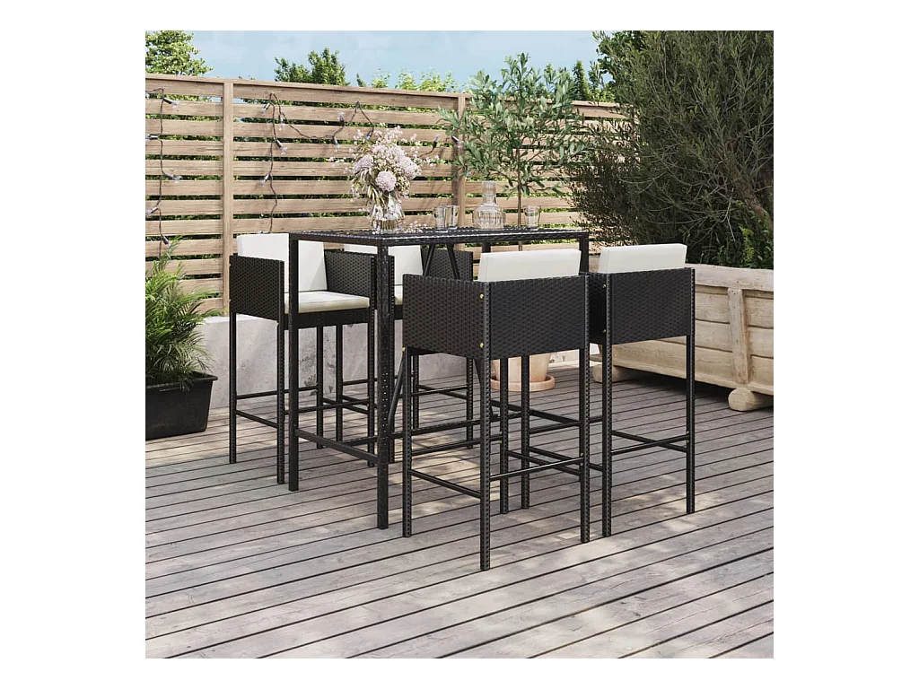 Vjorn Ensemble de bar de jardin 5 pcs avec coussins noir poly rotin