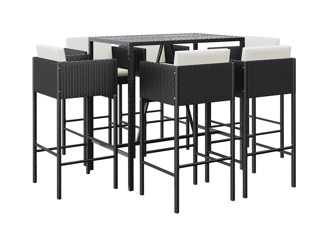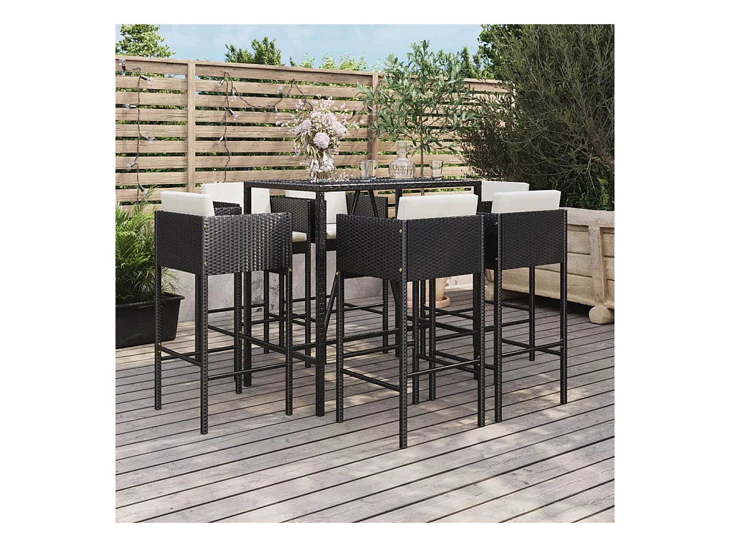 Virrat Ensemble de bar de jardin 7 pcs avec coussins noir poly rotin