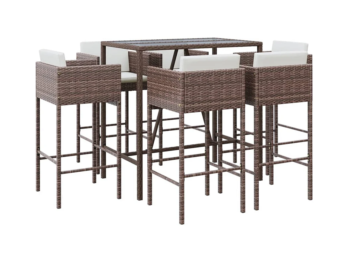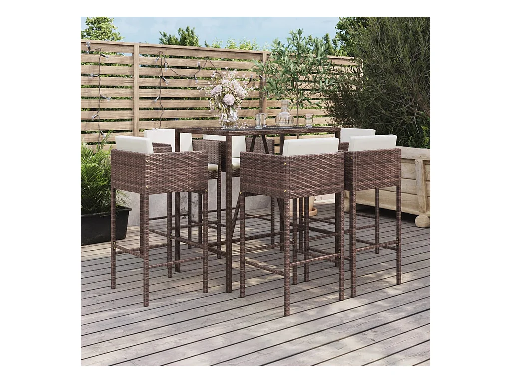 Virrat Ensemble de bar de jardin avec coussins 7 pcs marron poly rotin