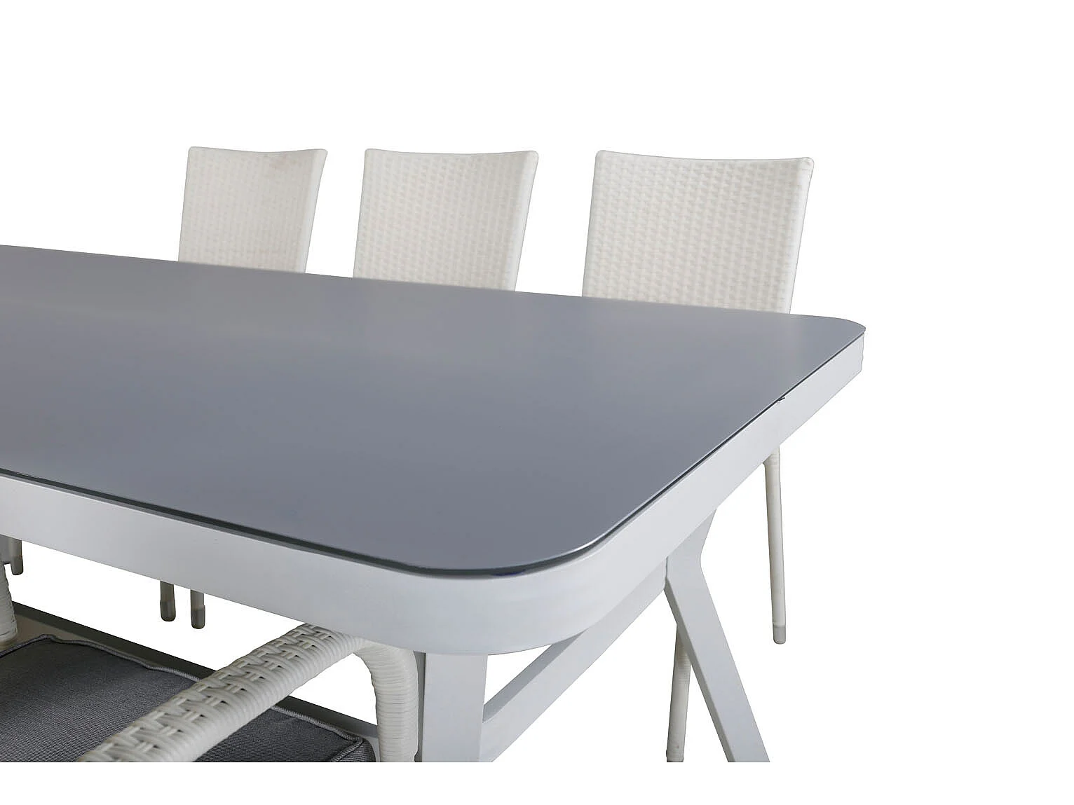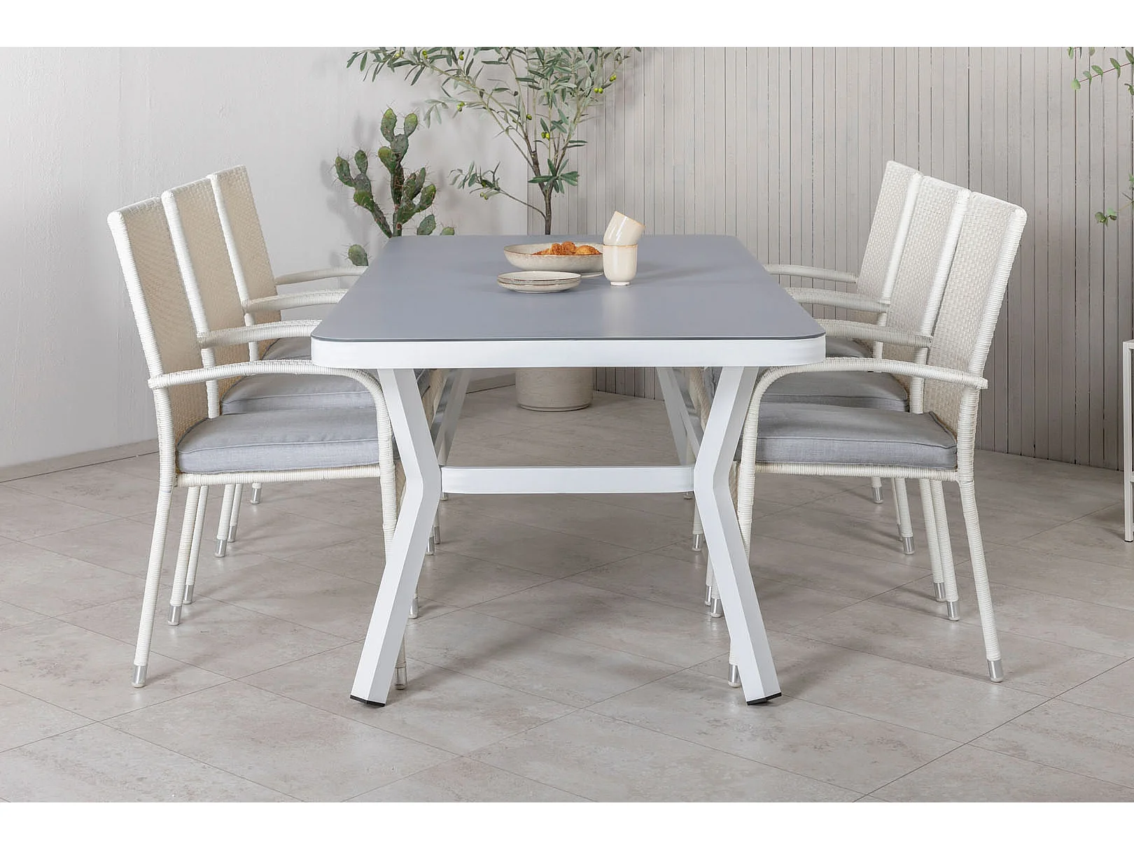 Virya Ensemble table et chaises de jardin, table 100x200cm et 6 chaises Anna, blanc, gris.