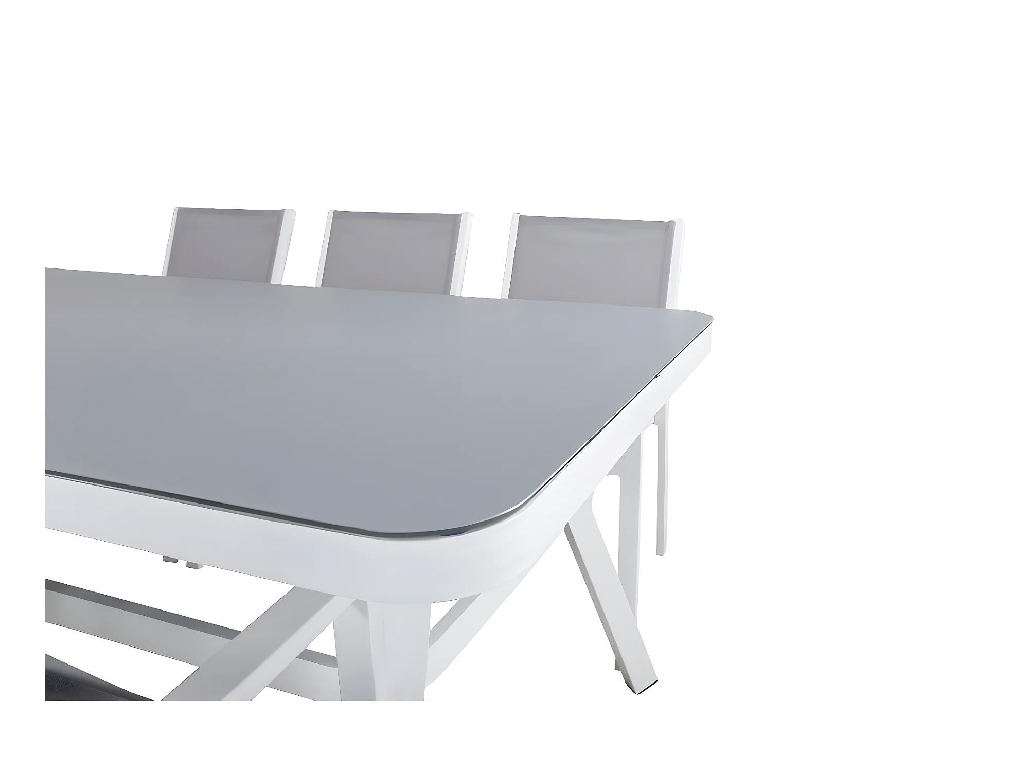 Virya Ensemble table et chaises de jardin, table 90x160cm et 4 chaises Virya, blanc, noir, gris.