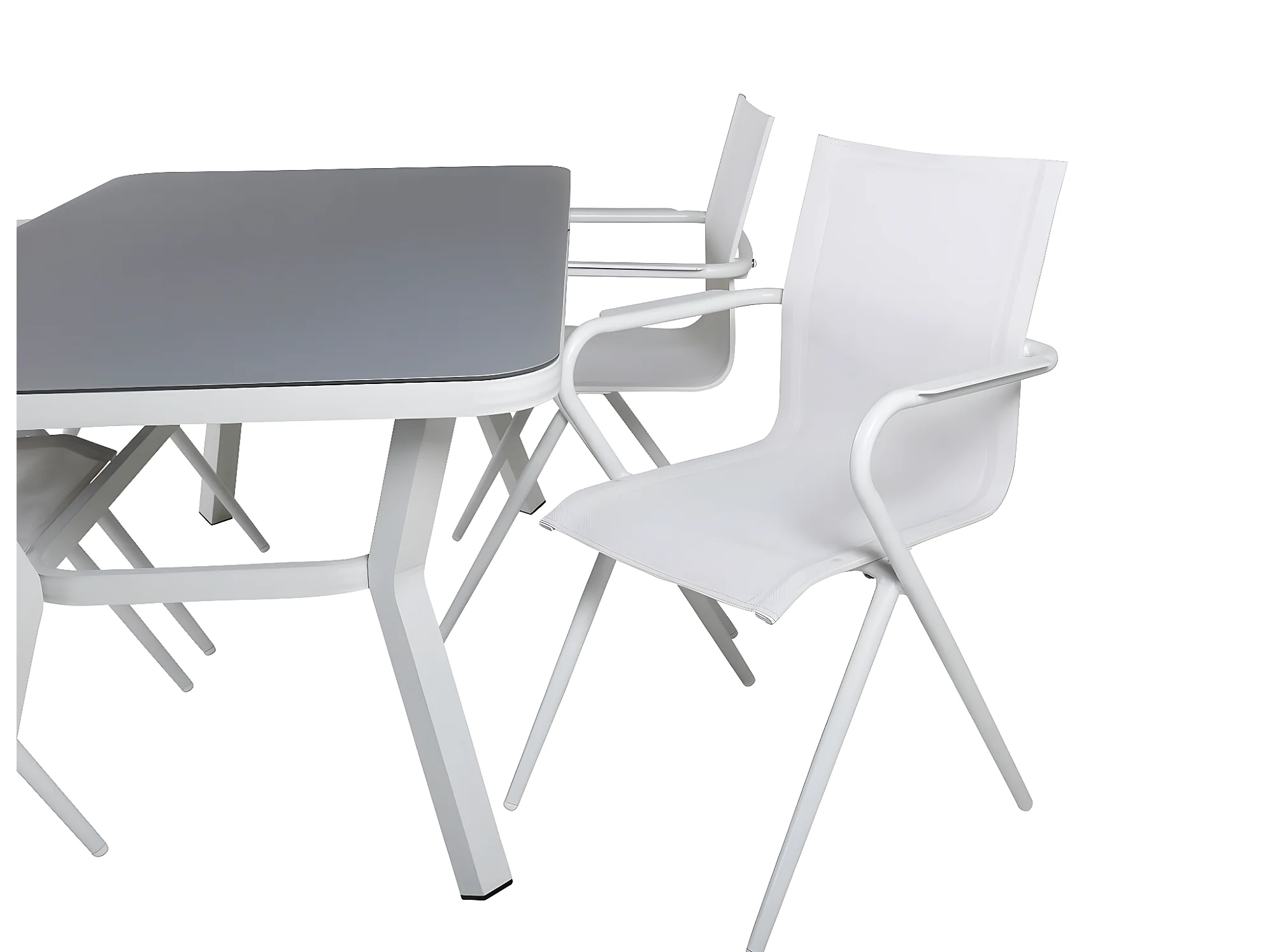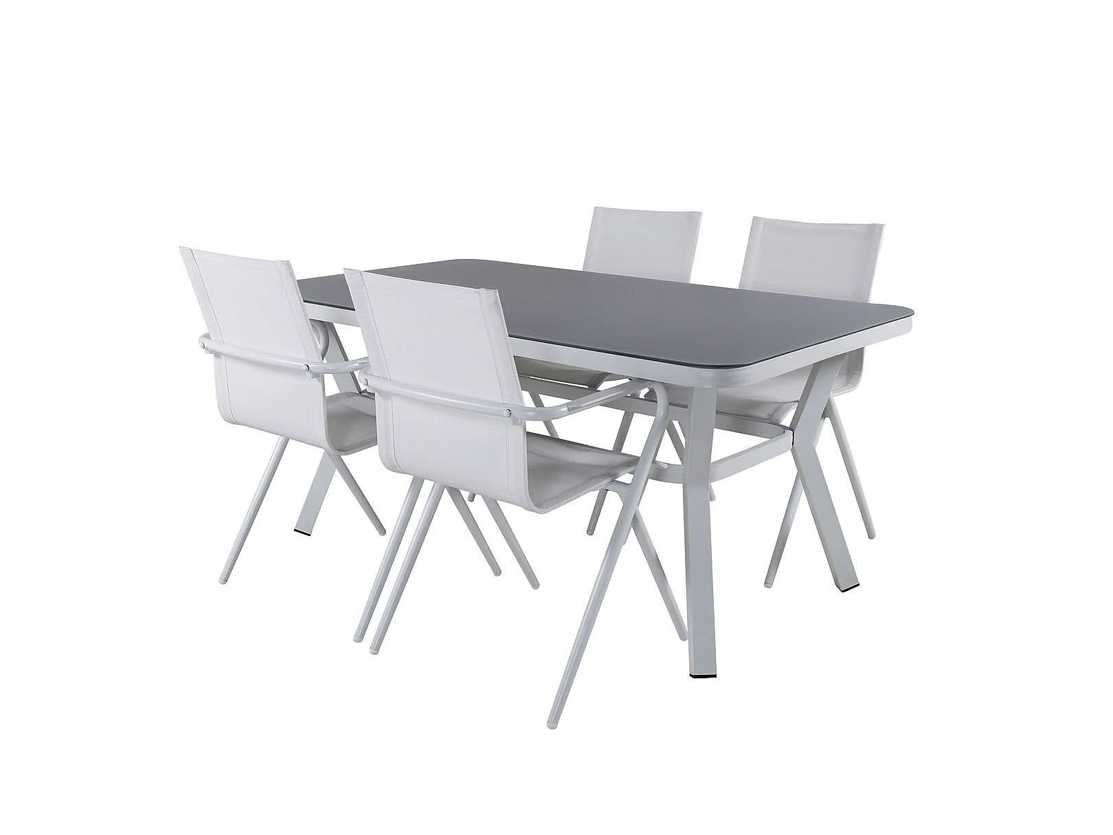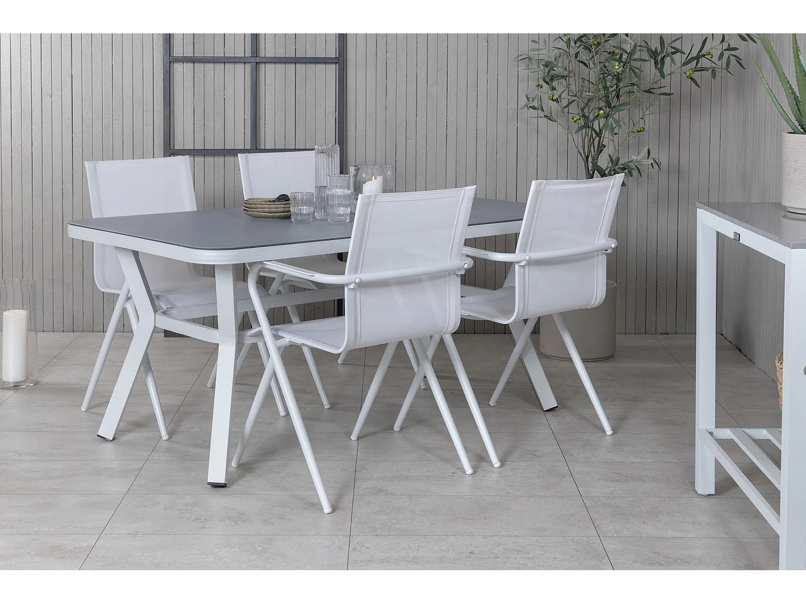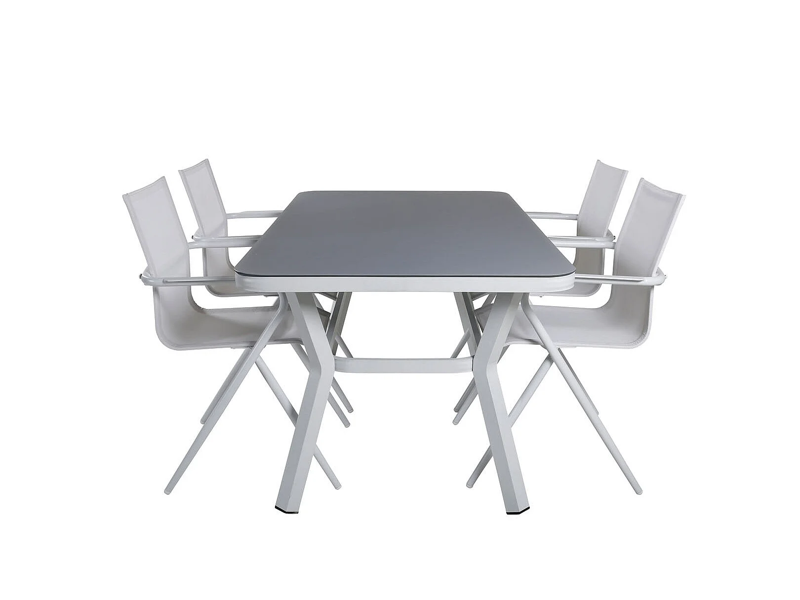Virya Ensemble table et chaises de jardin, table 90x160cm et 4 chaises alu Alina, blanc, gris.