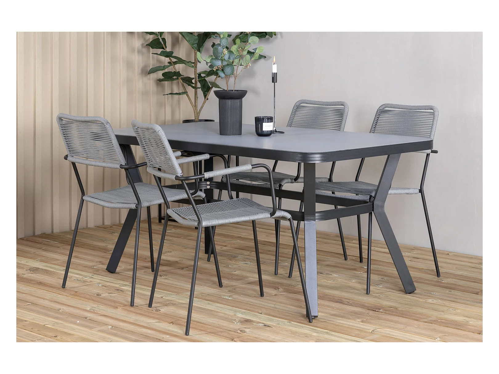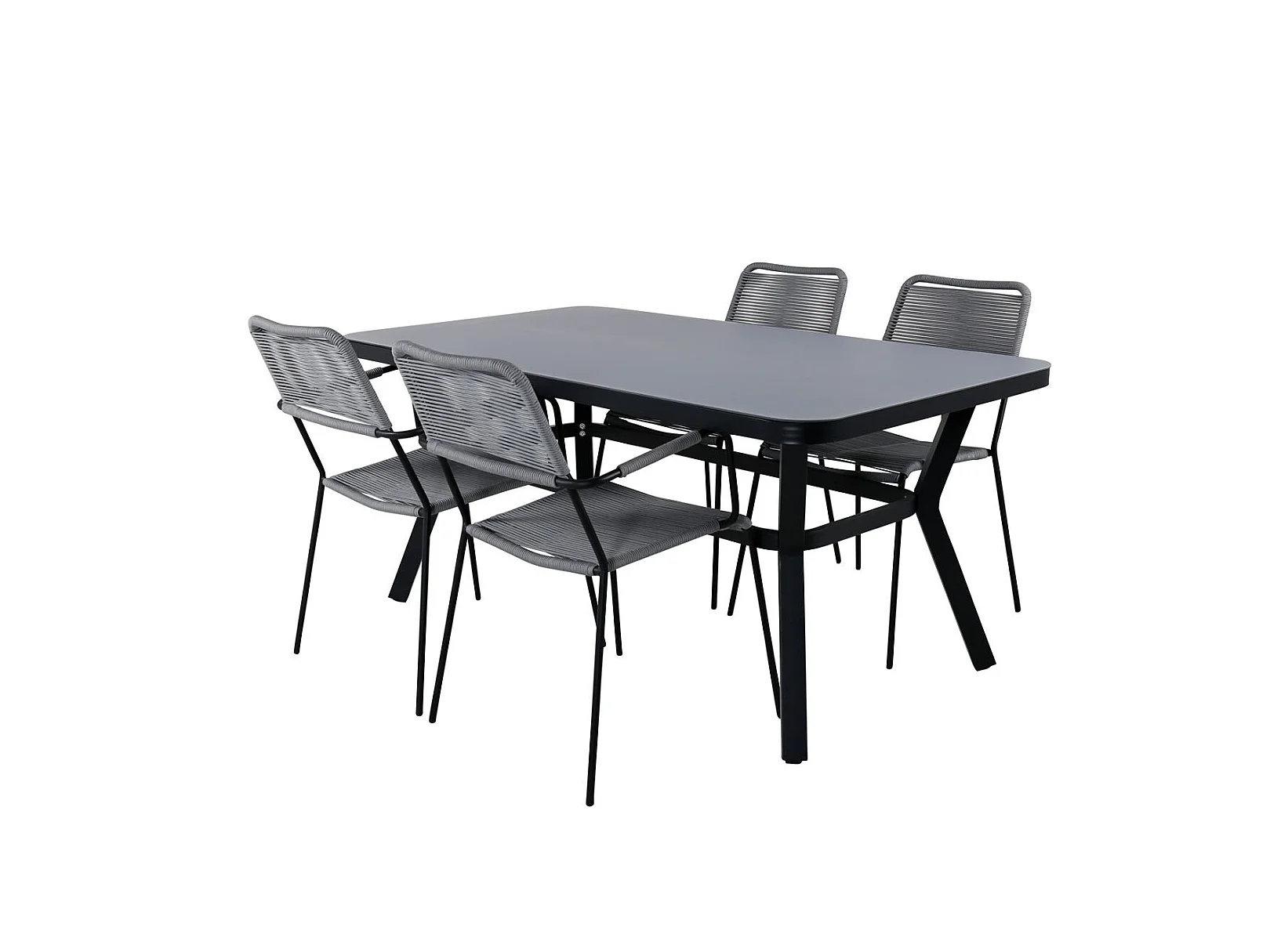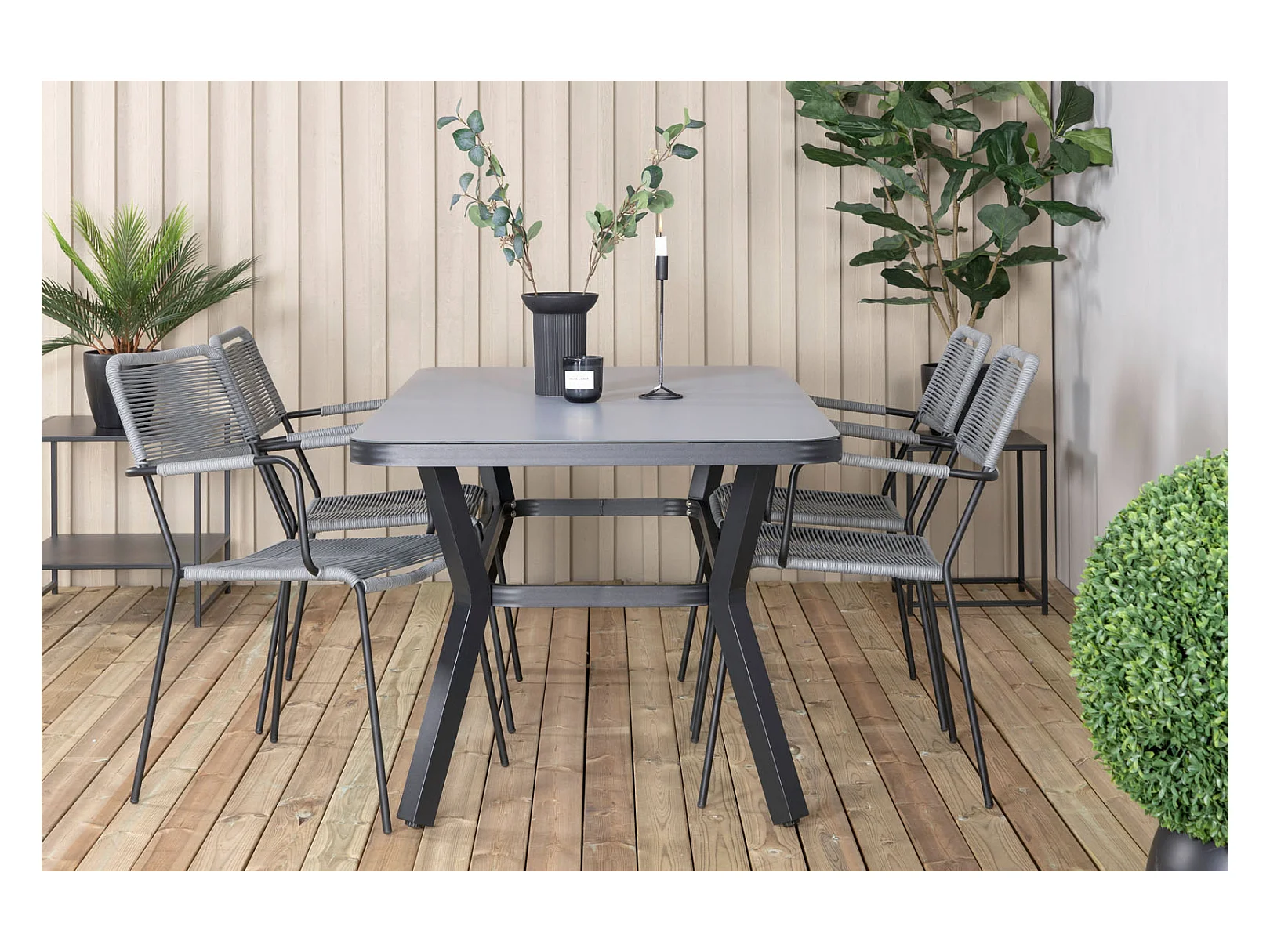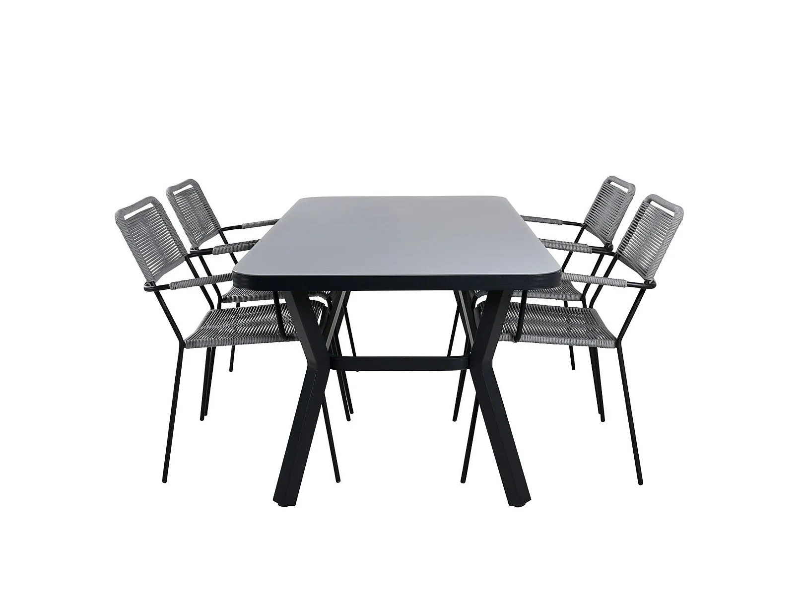 Virya Ensemble table et chaises de jardin, table 90x160cm et 4 chaises avec accoudoirs G Lindos, noir, gris.