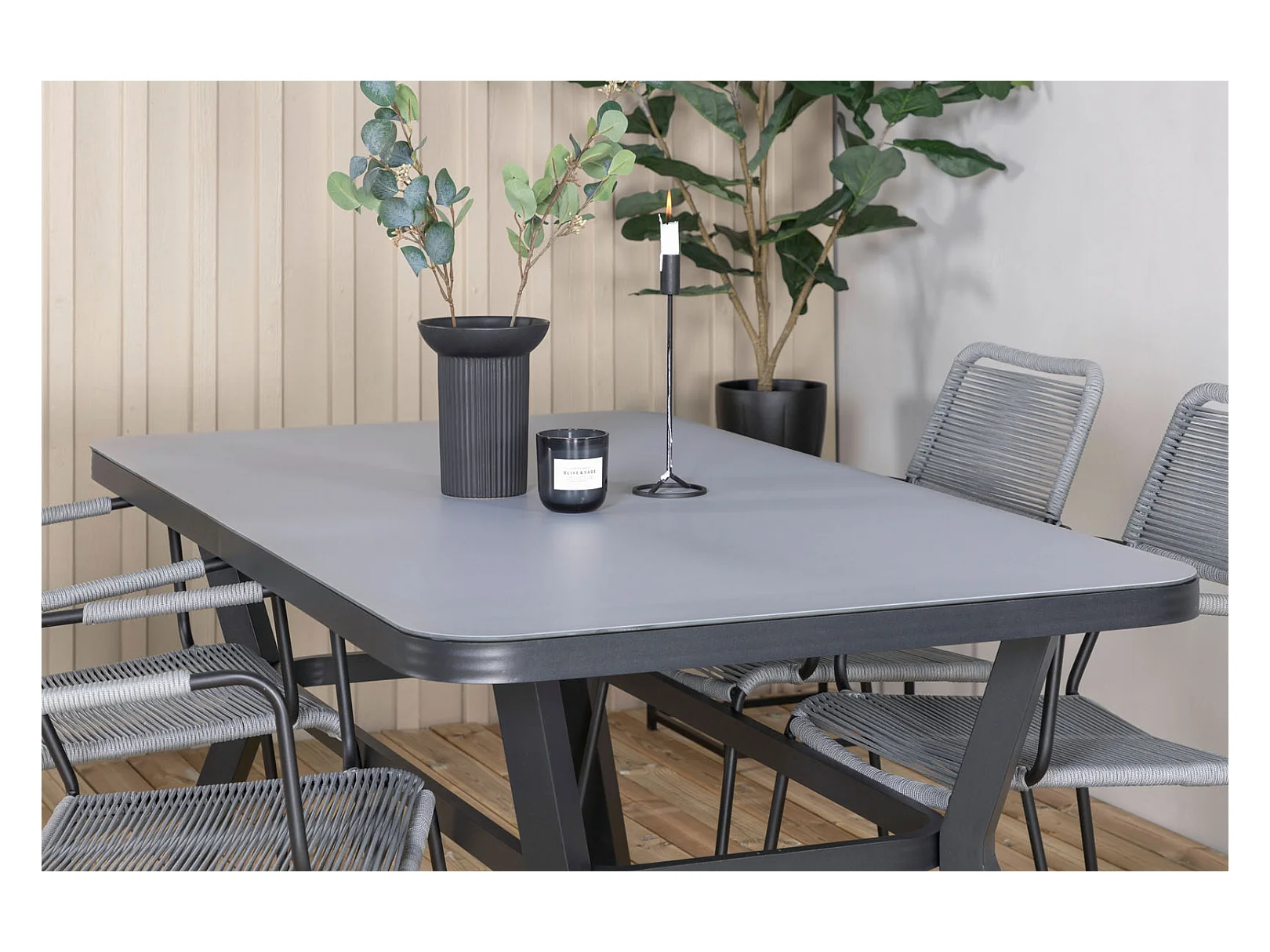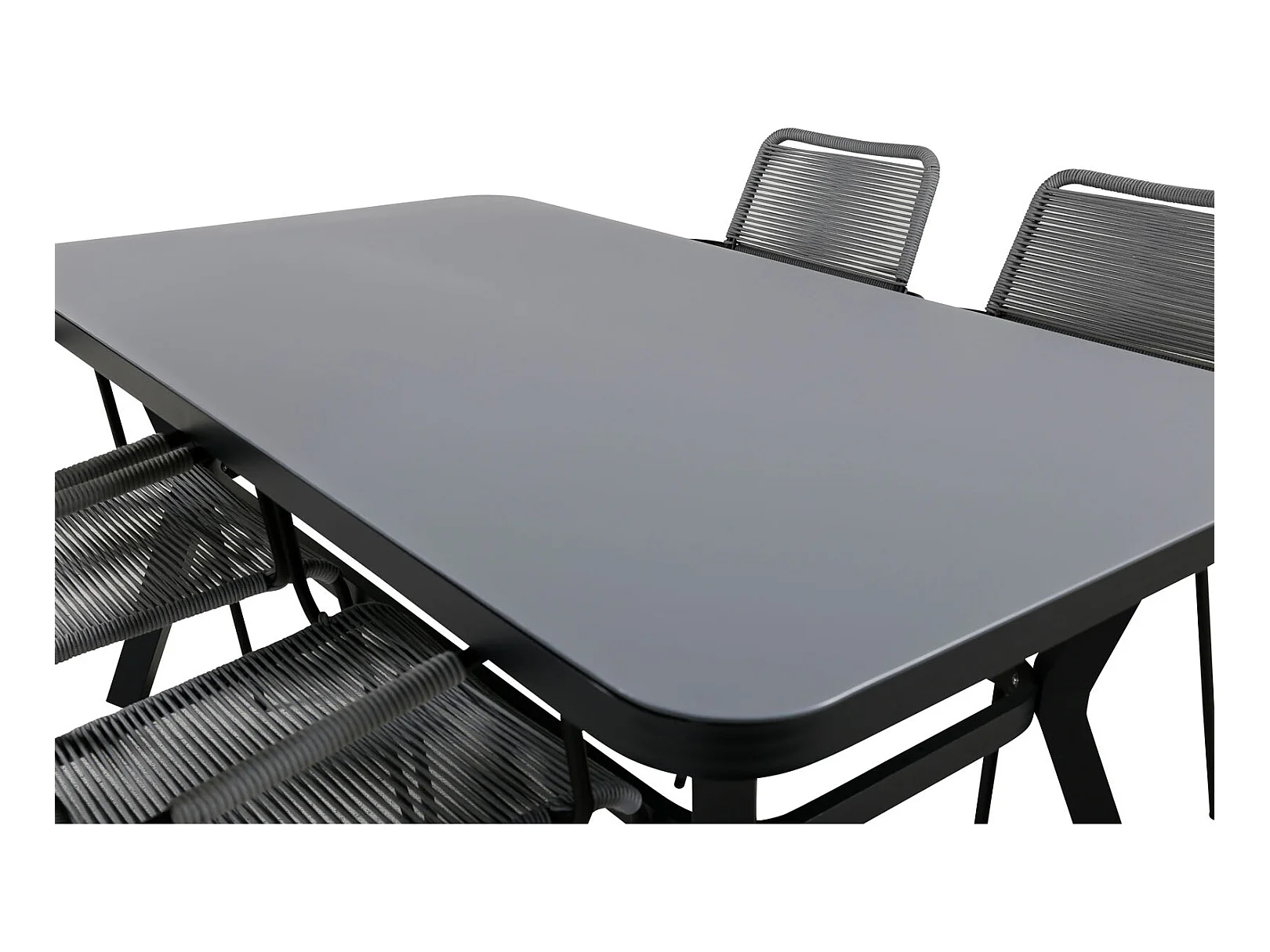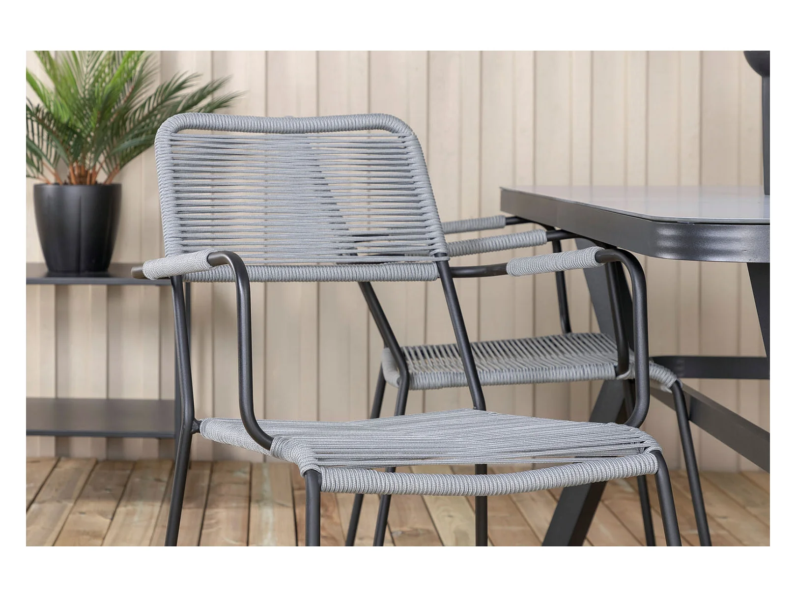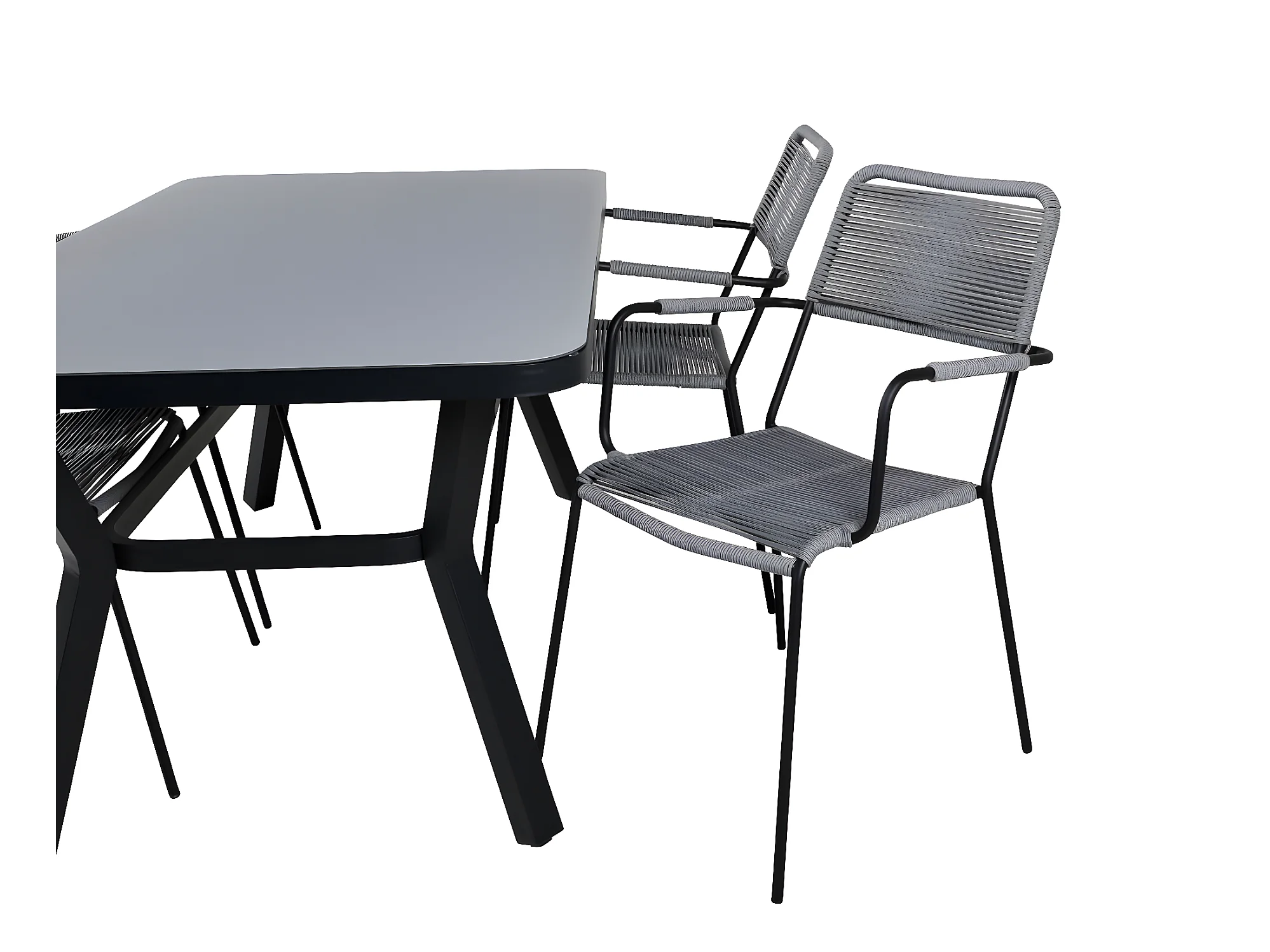 Virya Ensemble table et chaises de jardin, table 90x160cm et 4 chaises avec accoudoirs G Lindos, noir, gris.