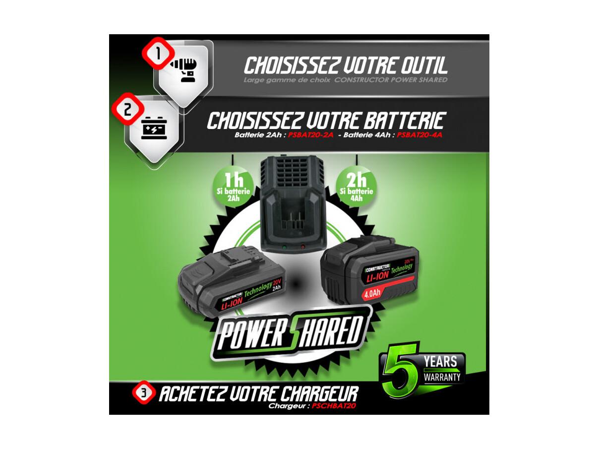Perceuse-visseuse Constructor 20V Lithium 2 batteries