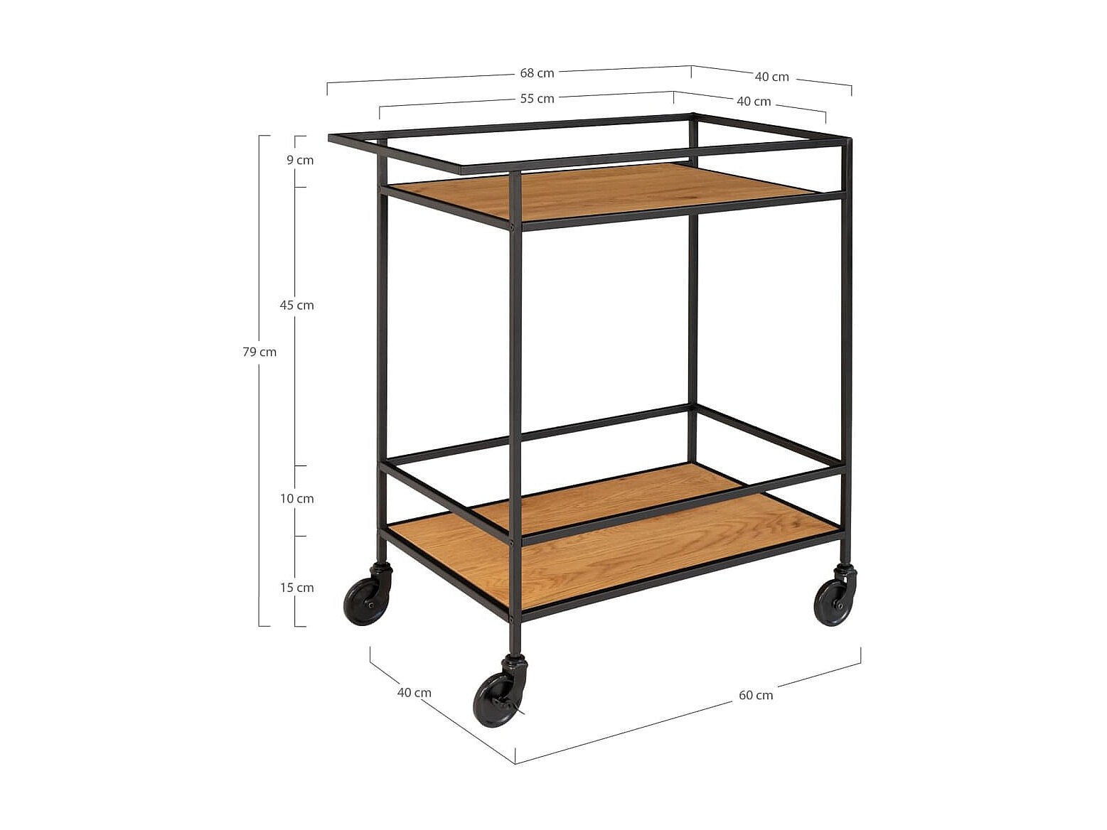 Chariot de bar Avery 68x40x59 cm Naturel et noir