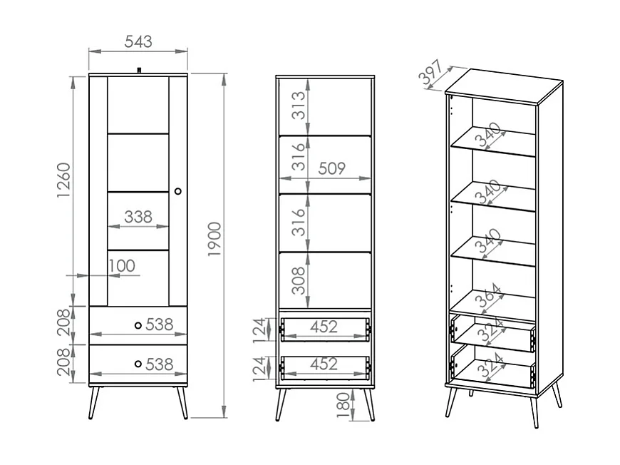 Vitrine 1 porte 2 tiroirs Thalia Vert