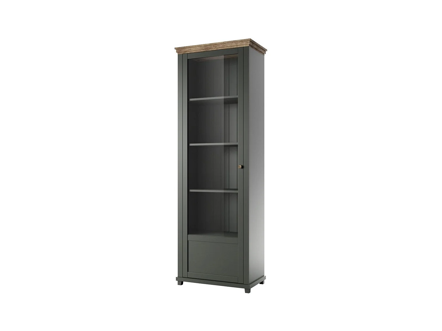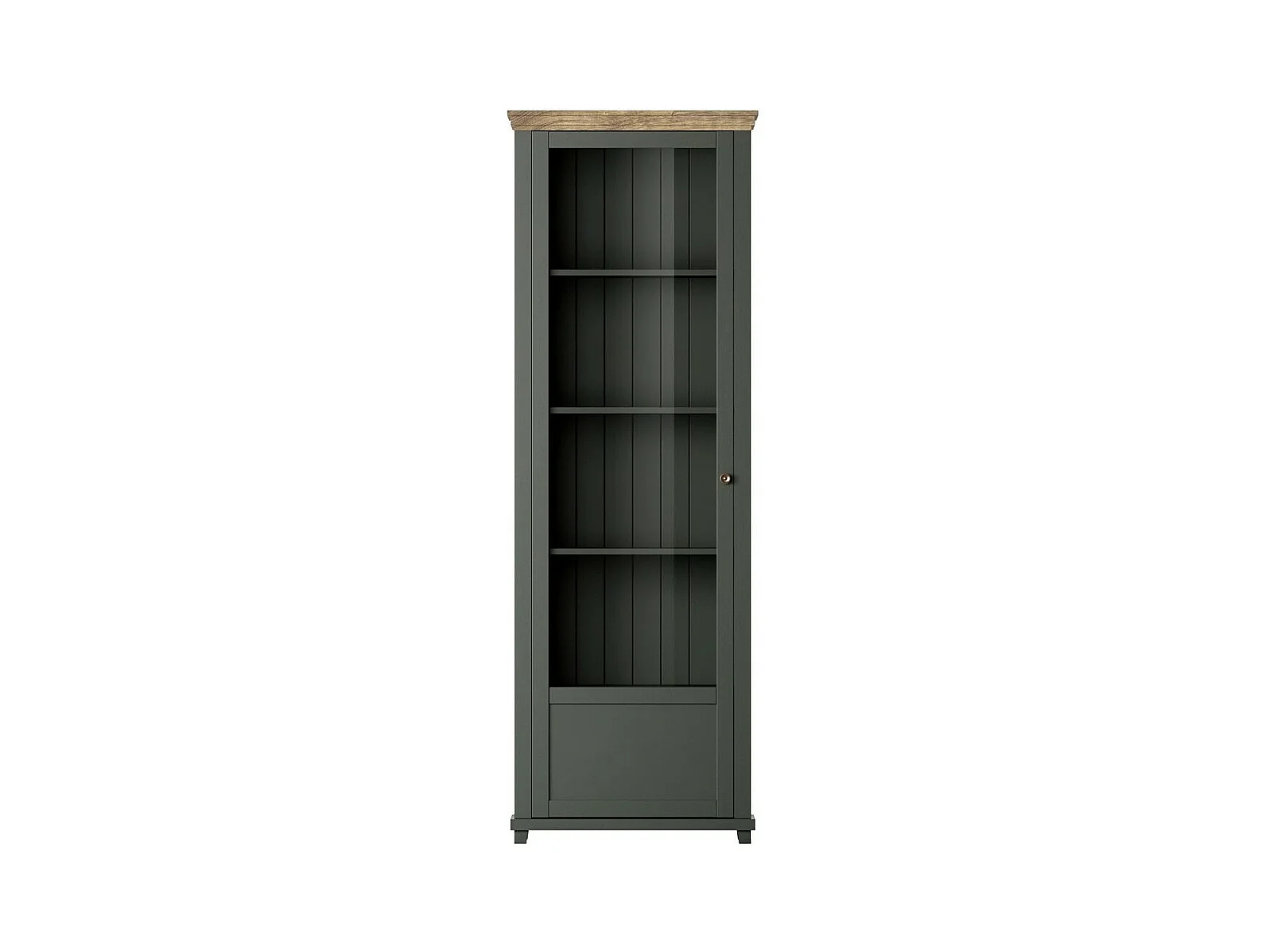 Vitrine 1 porte collection ASSIA. Coloris vert et chêne. Ouverture gauche