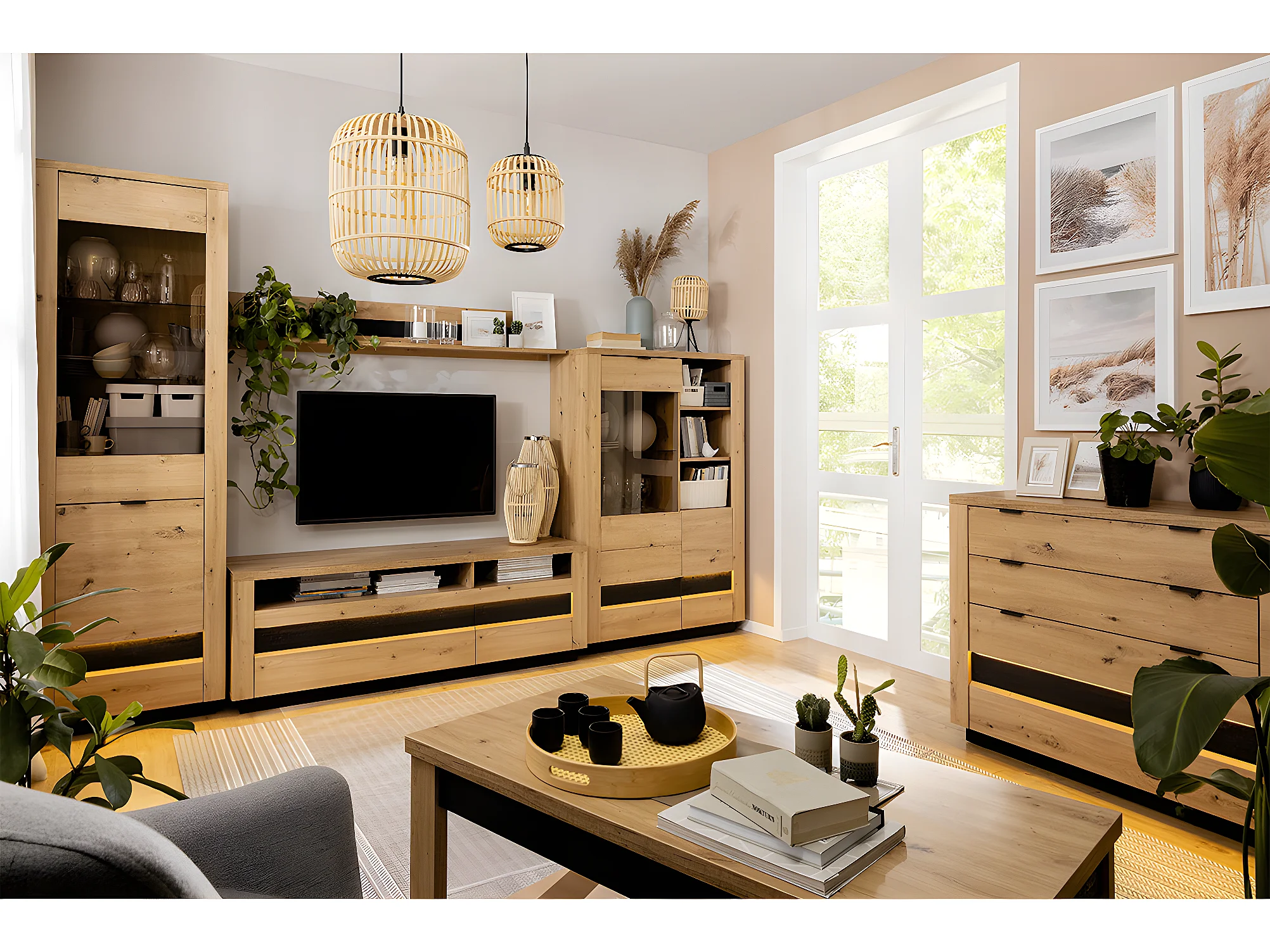 Vitrine 2 portes avec LED Glenn Bois et Noir