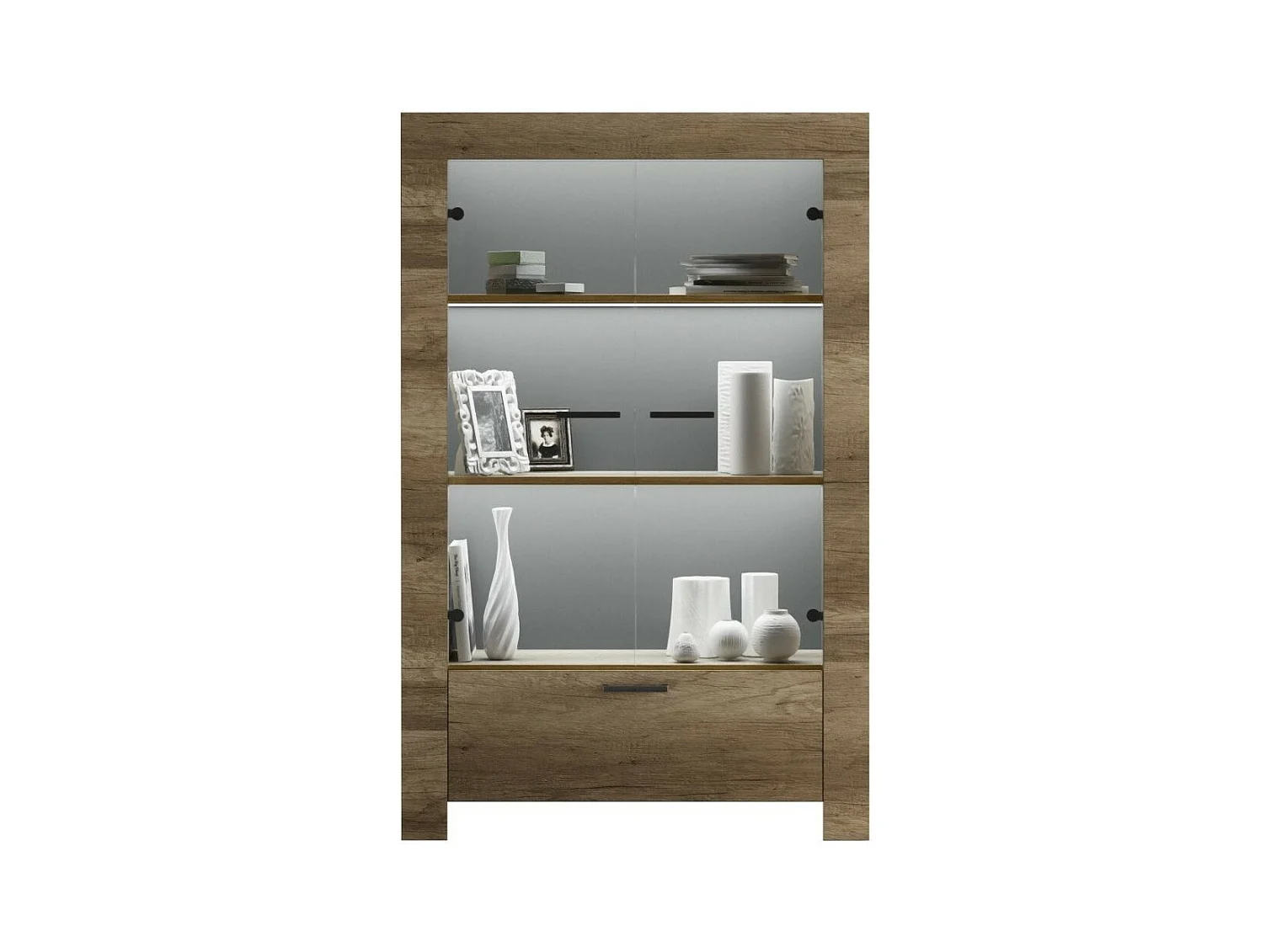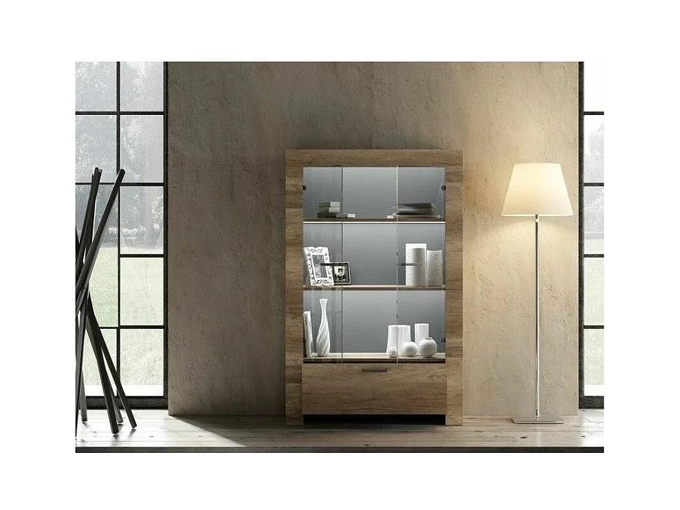 Vitrine 2 portes bois mélaminé chêne foncé Saxo L 102cm