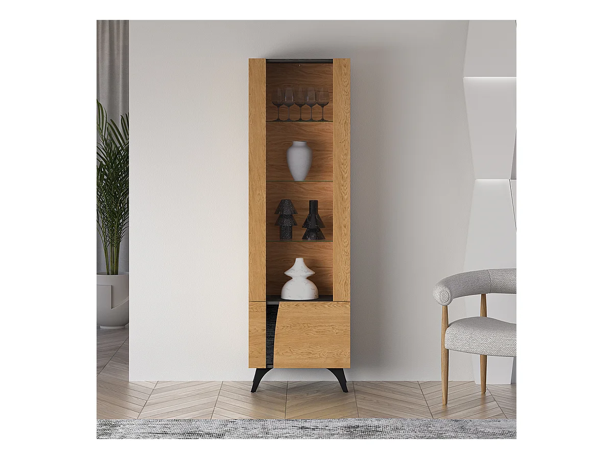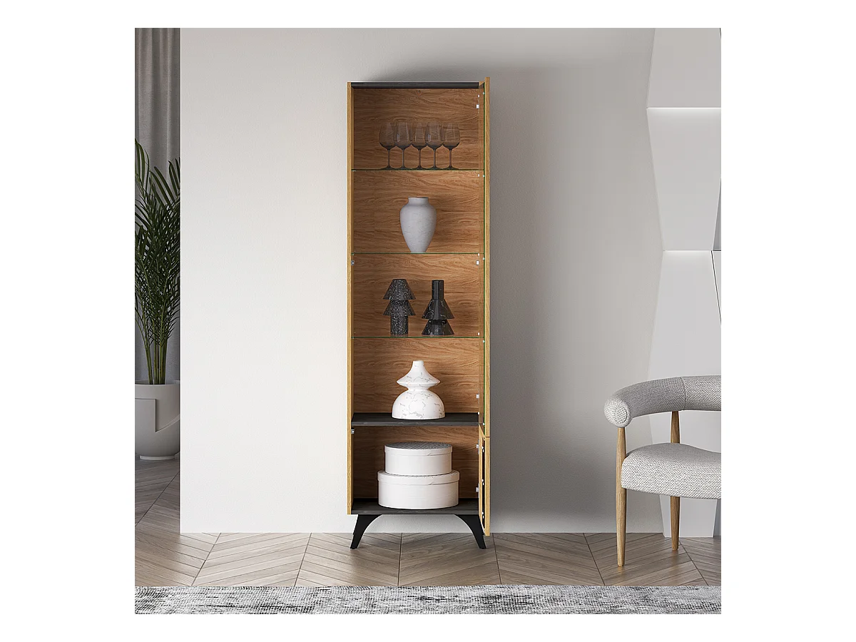 Vitrine Noir 82,5x30,5x150 cm Aggloméré OFR60519 BonneVie Meuble