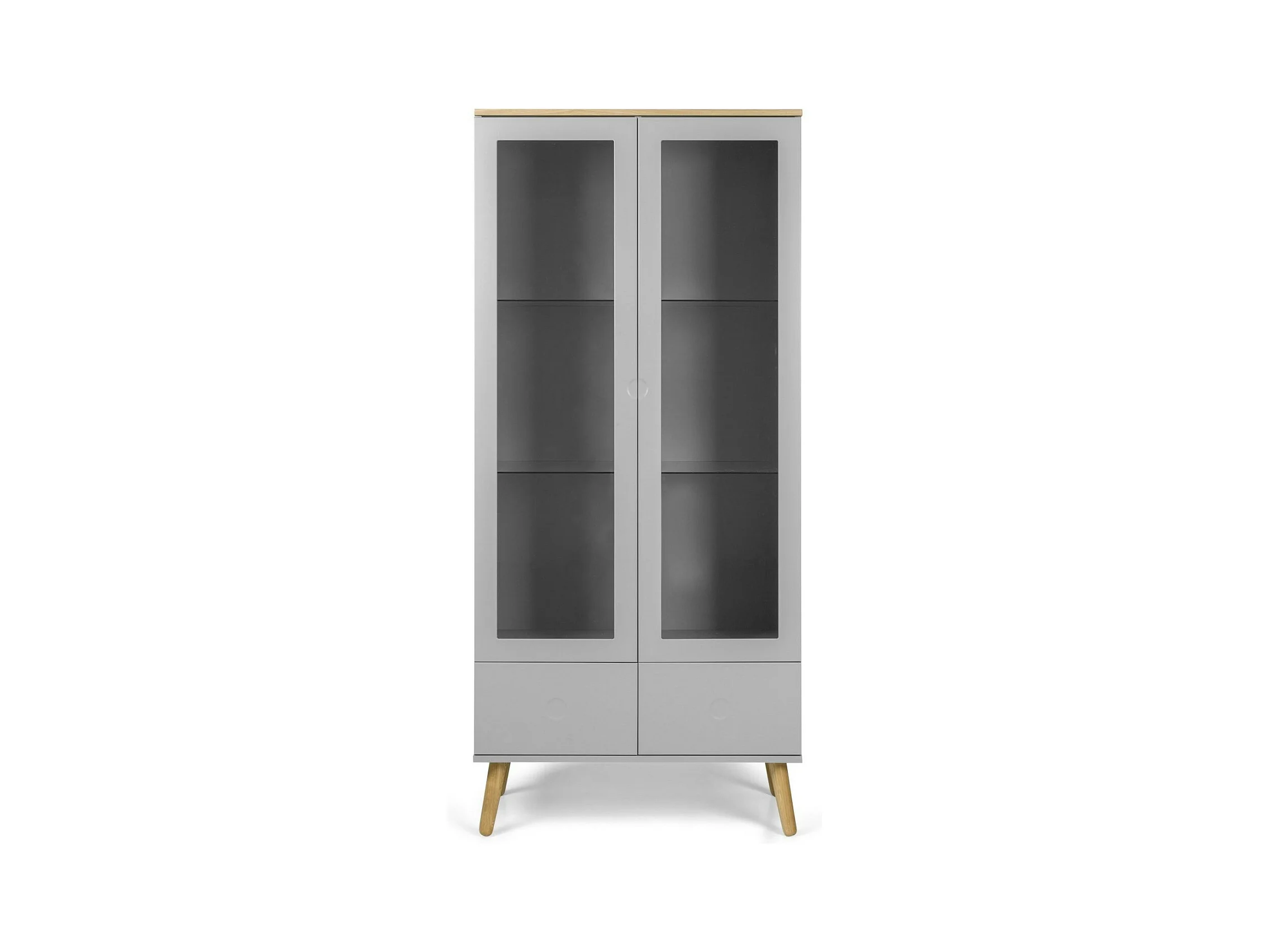 Vitrine 2 portes laqué gris et pieds chêne massif clair Pecas 79cm