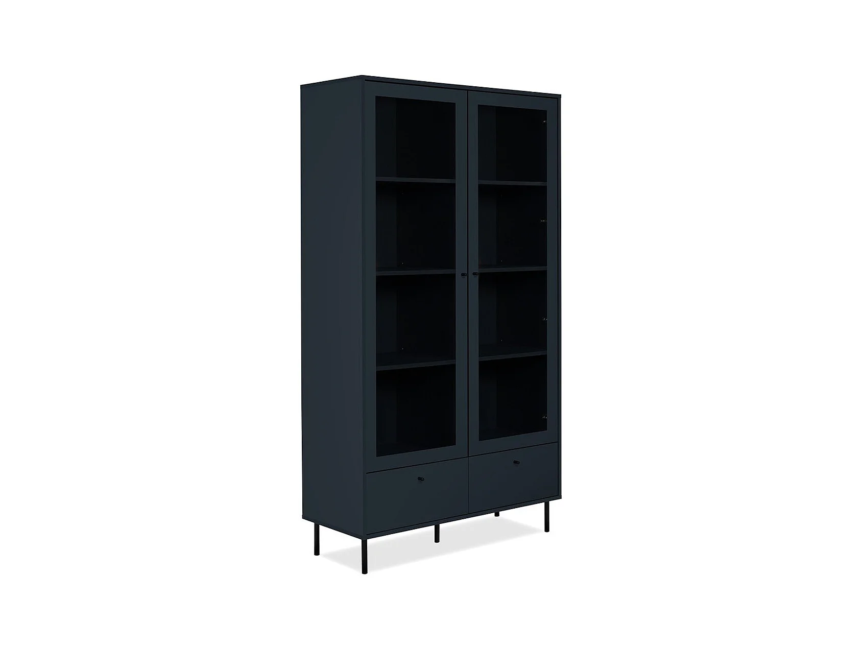 Vitrine 2 Portes Vitrées et 2 Tiroirs Bleu Marine H183 cm - BOGOTA