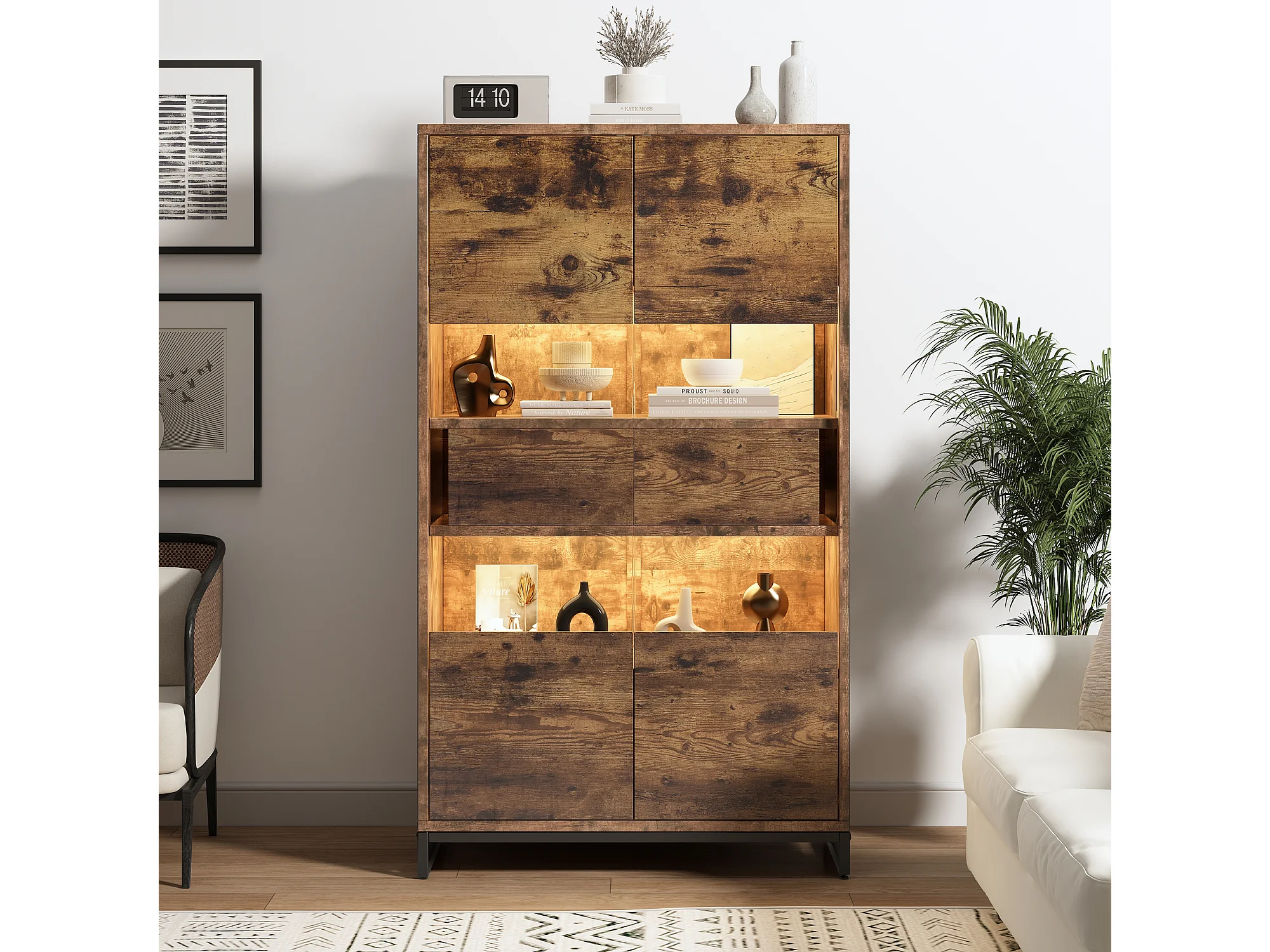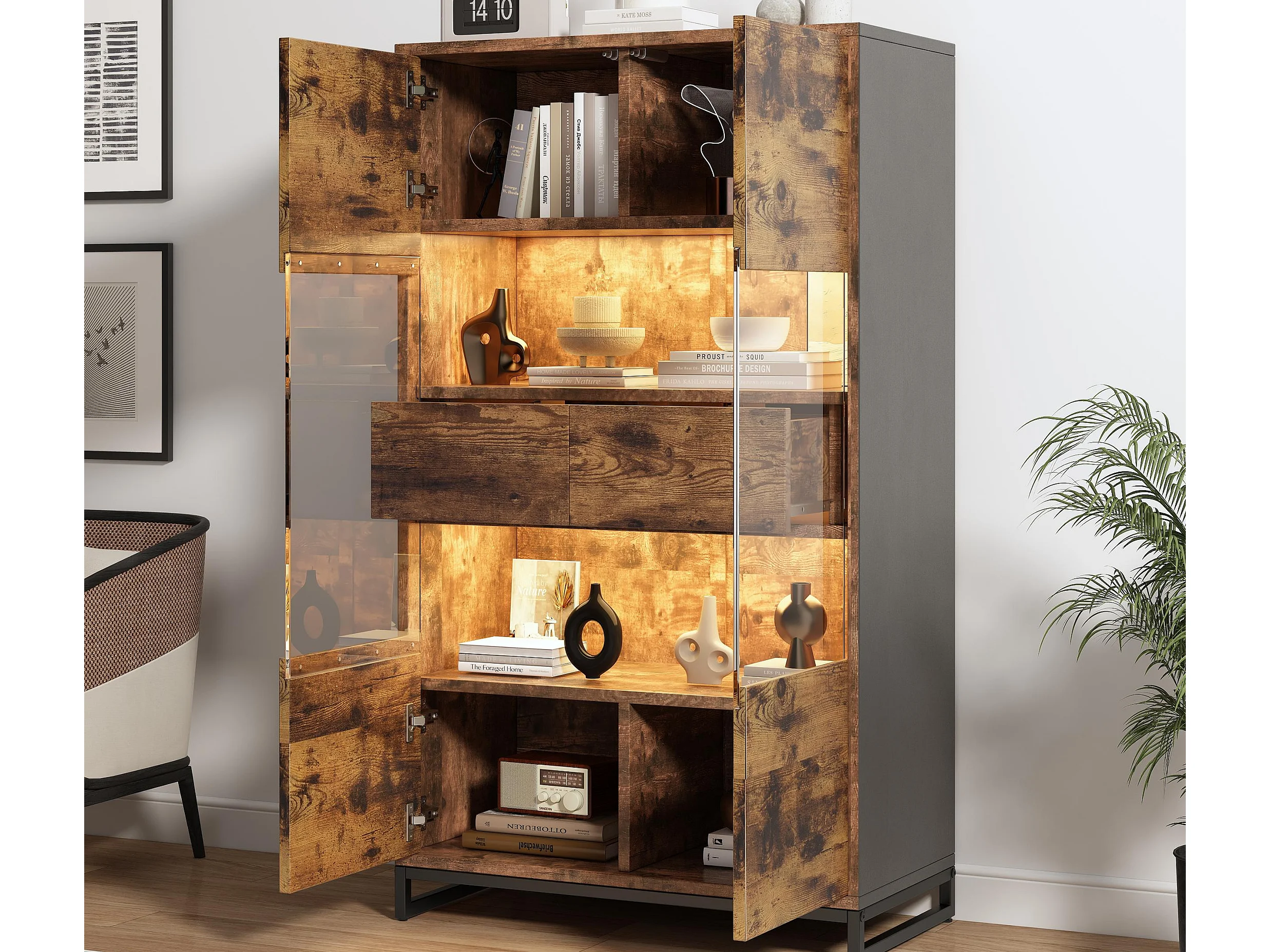 Vitrine 80x40x138cm - avec éclairage LED - avec 2 tiroirs et 2 portes - avec panneau acrylique - marron