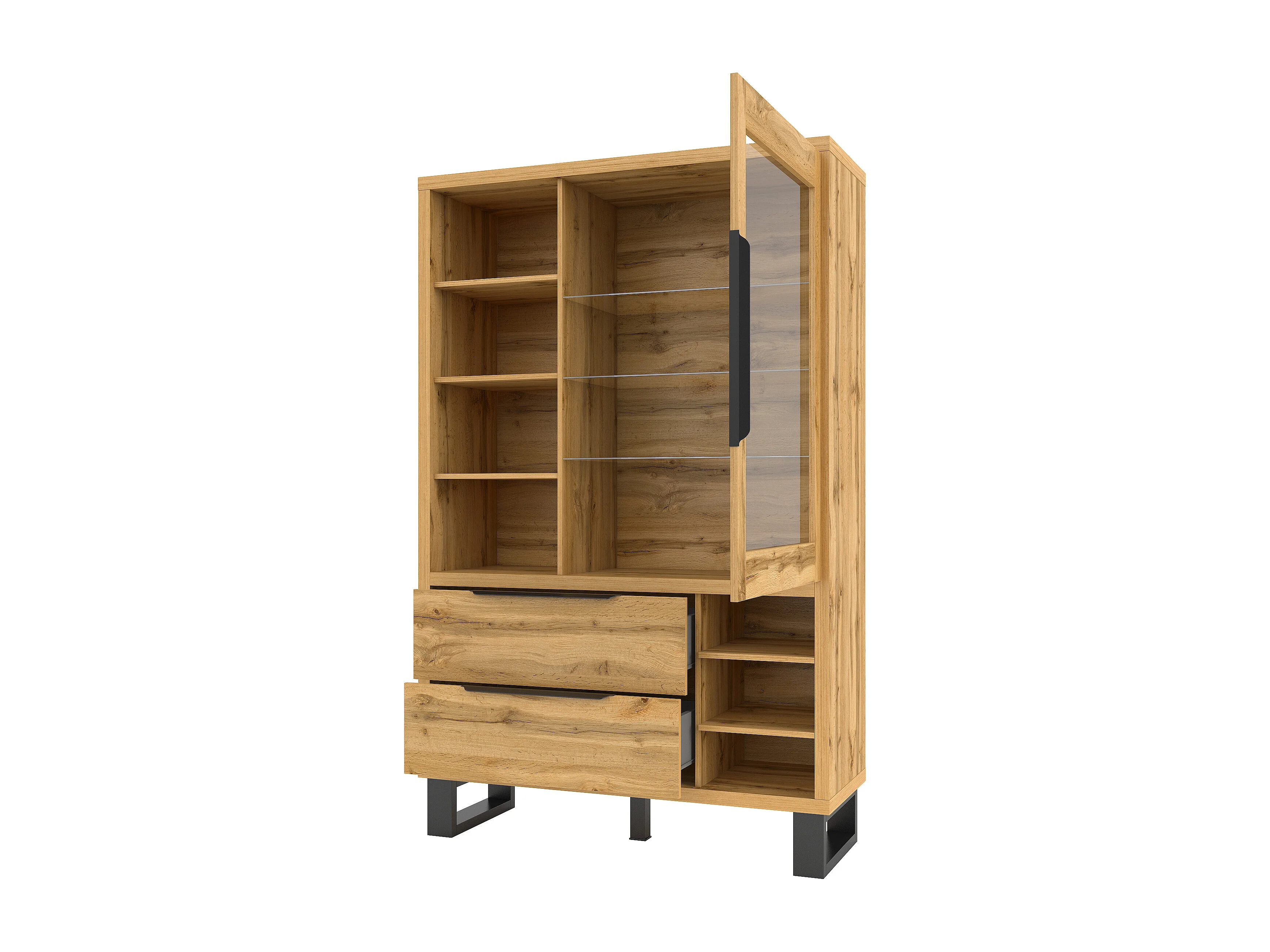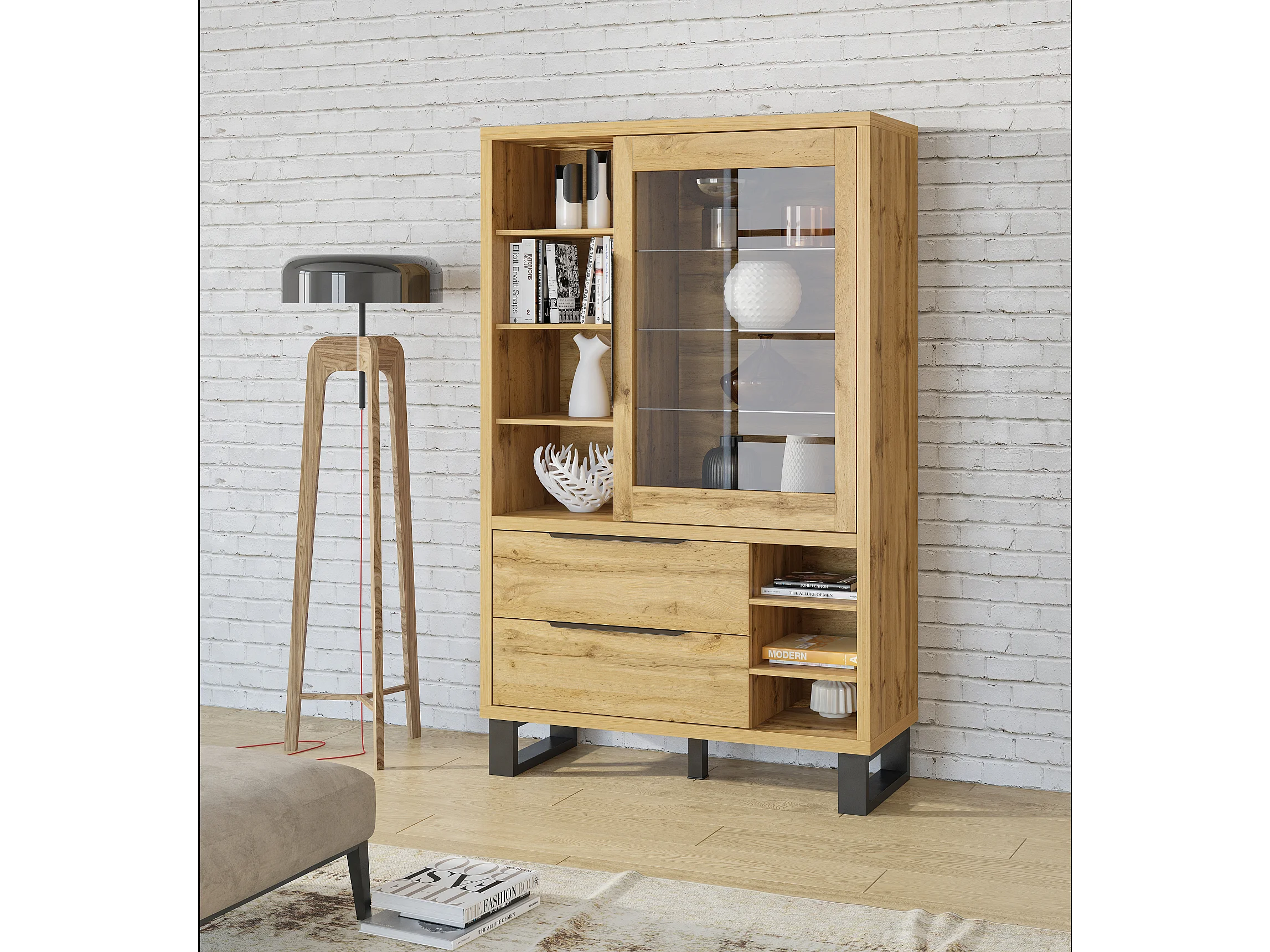 Vitrine en chêne massif 1 porte vitrée 2 tiroirs Nordo 80cm