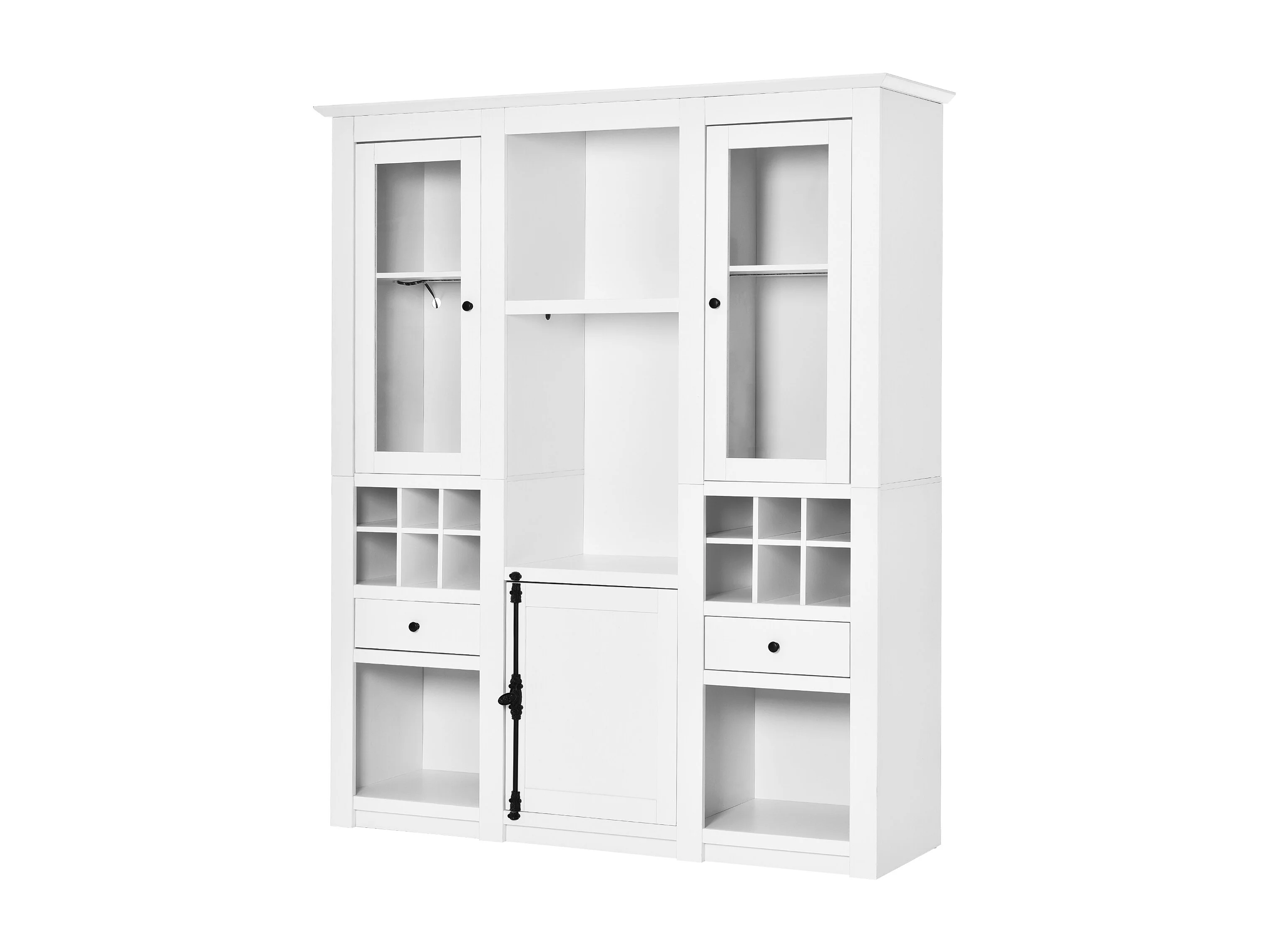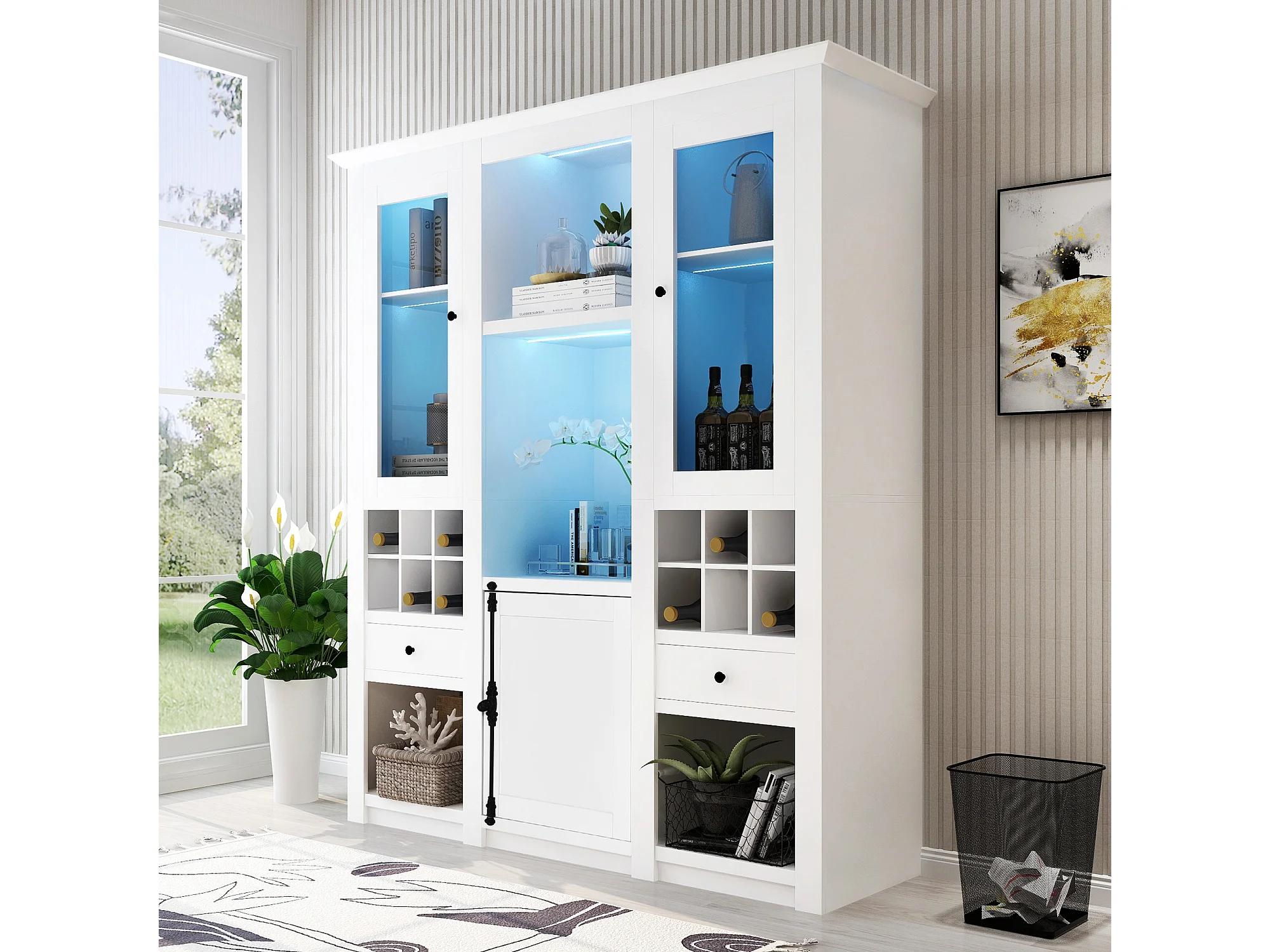 Vitrine autoportante/meubles muraux de rangement - avec portes + tiroirs + étagères + Leds - MDF - blanc