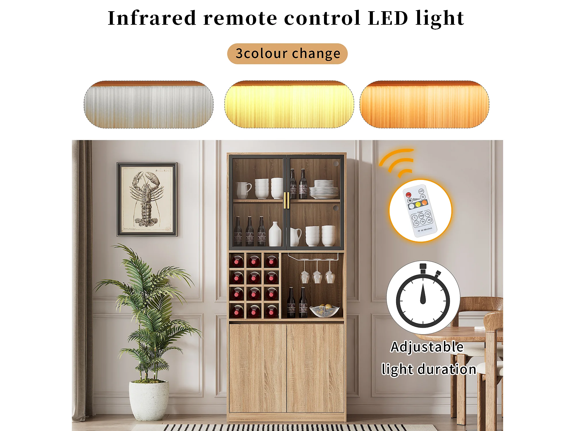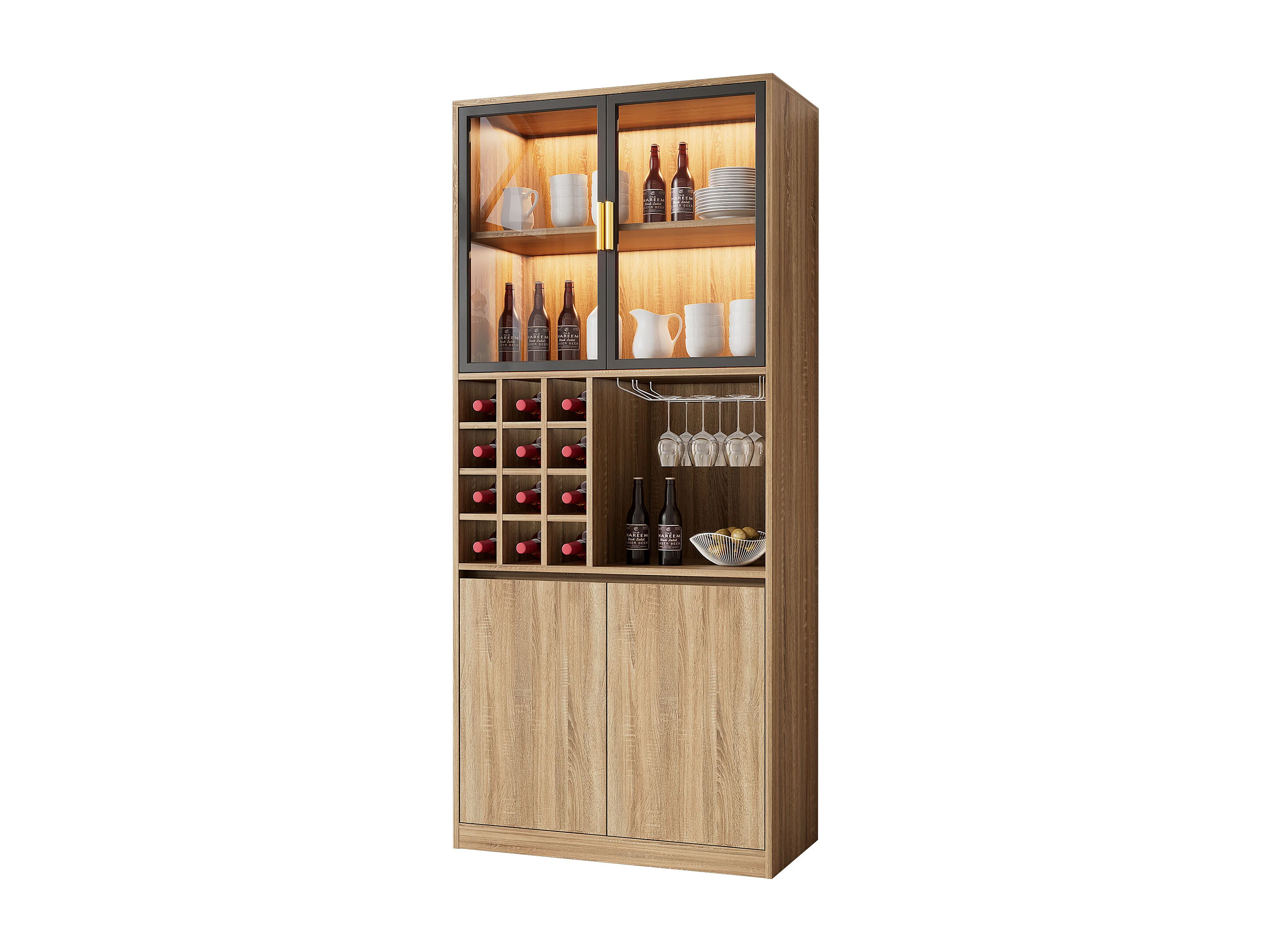 Vitrine avec éclairage LED, portes en verre, MDF, naturel (80x40x180 cm)