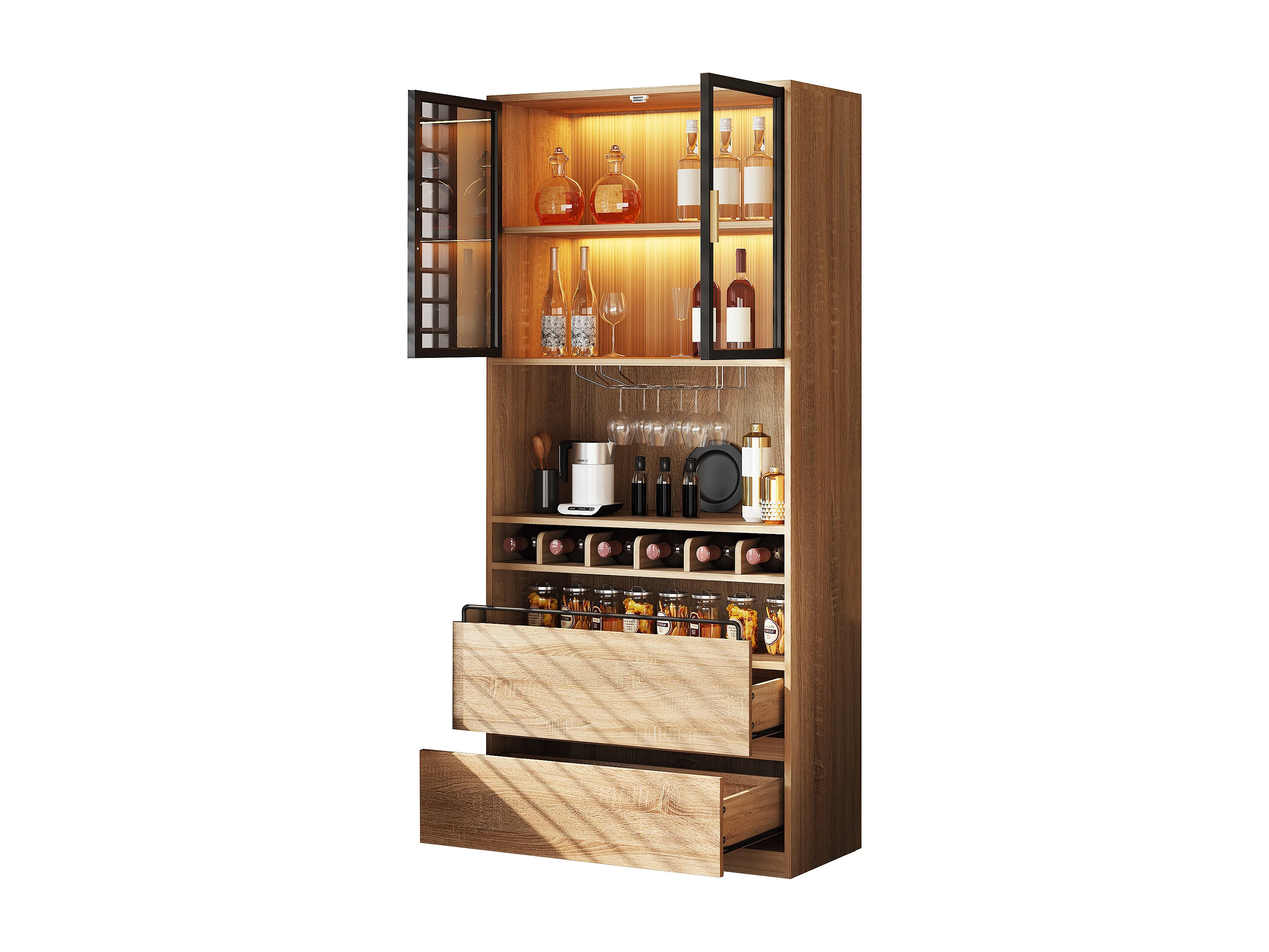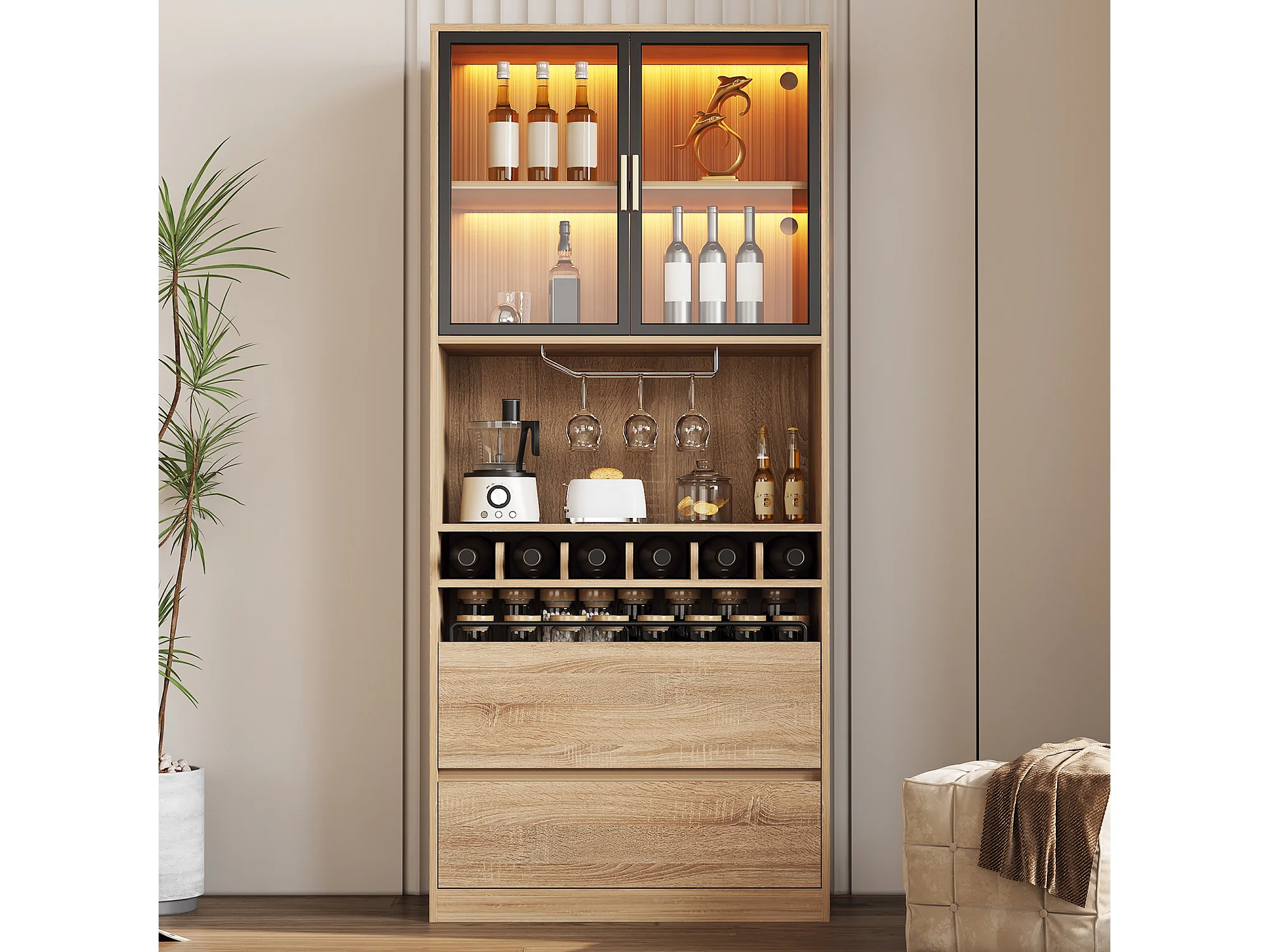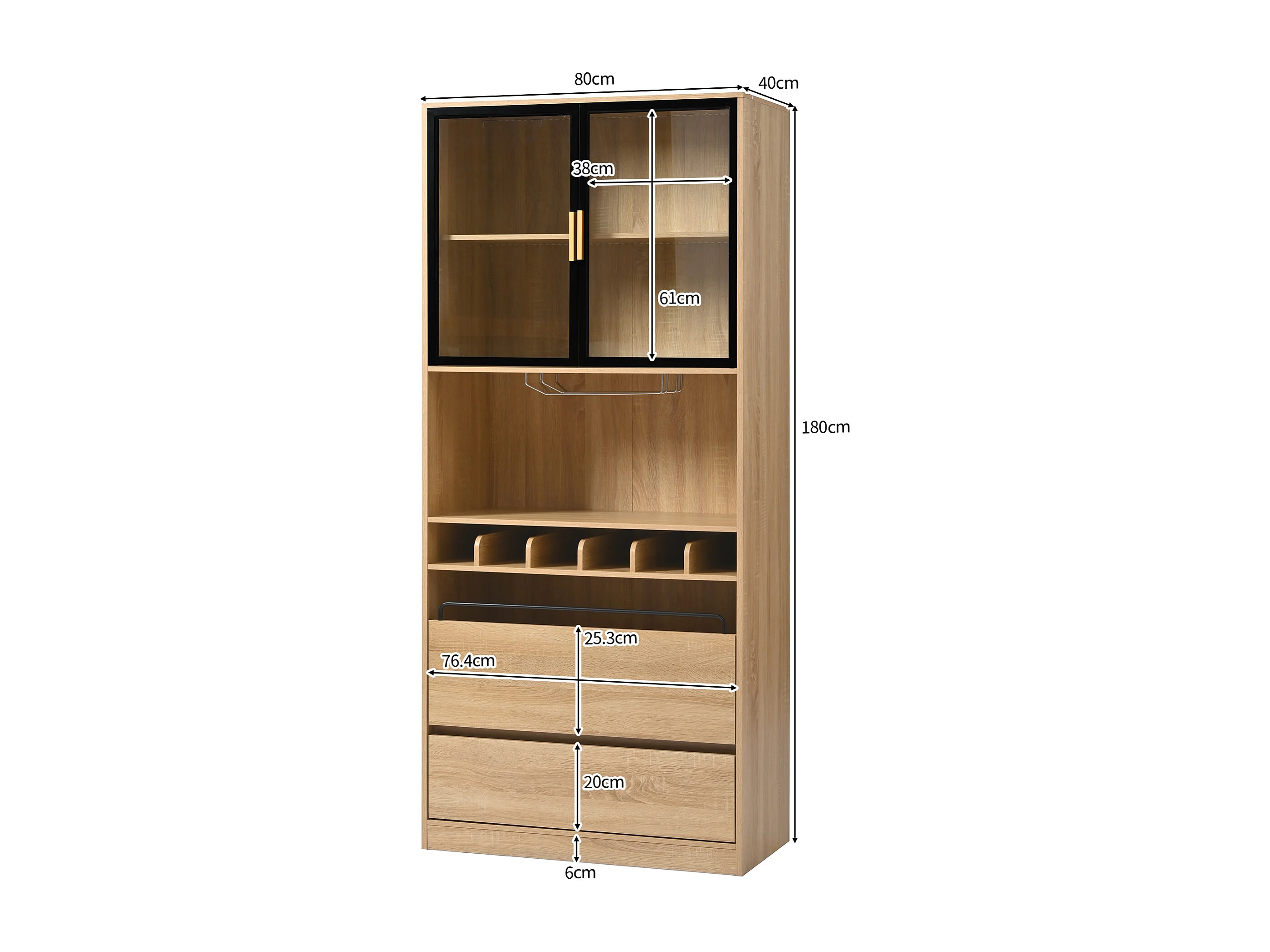 Vitrine avec éclairage LED, portes en verre, MDF, naturel (80x40x180 cm)