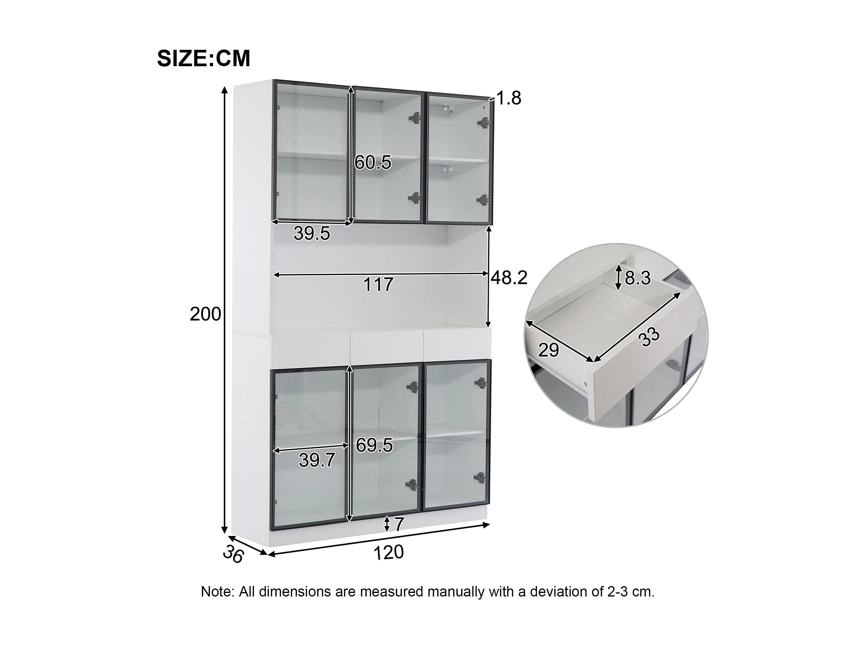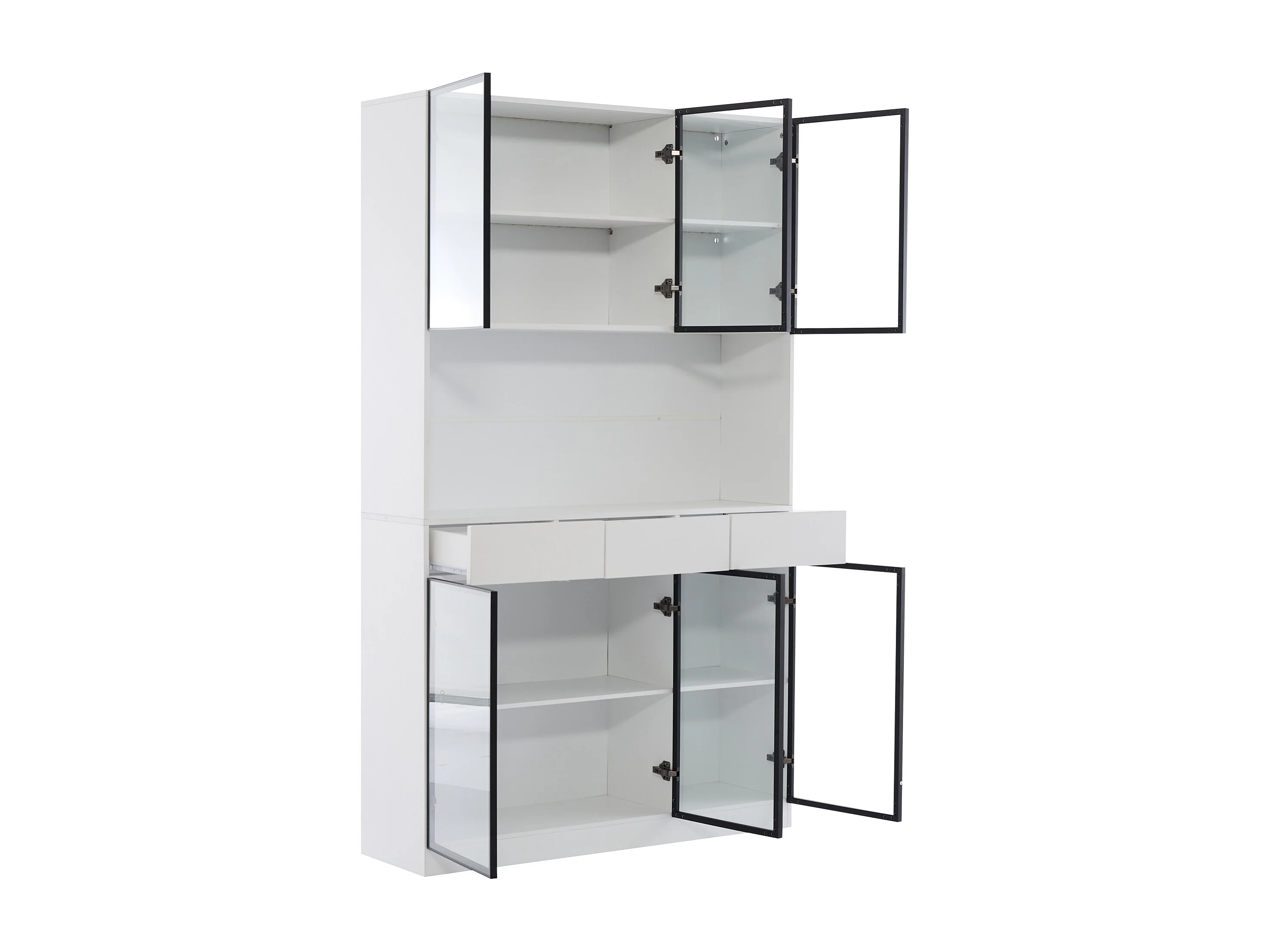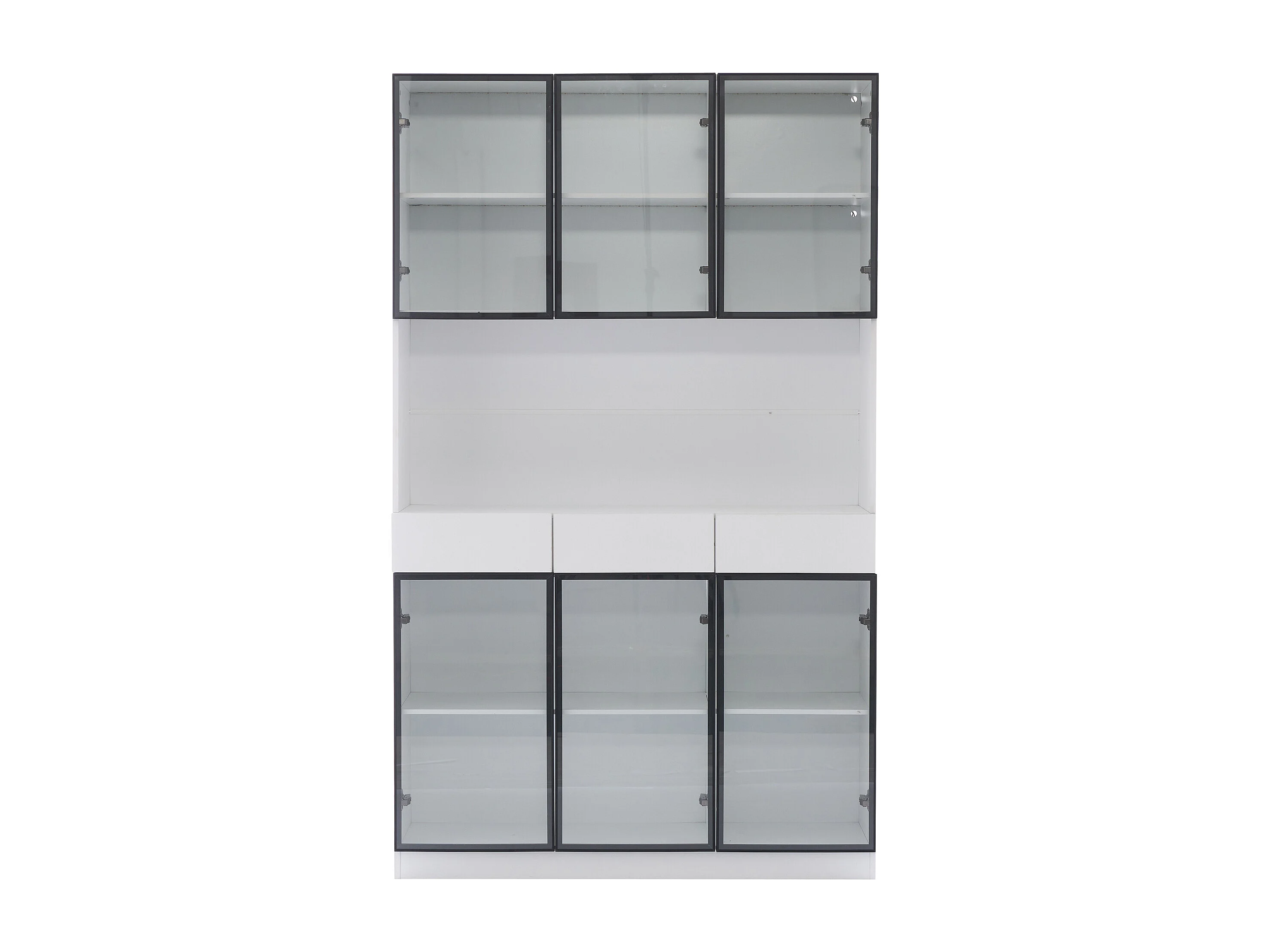 Vitrine avec LEDs, 3 tiroirs et 6 portes vitrées - Blanc et noir