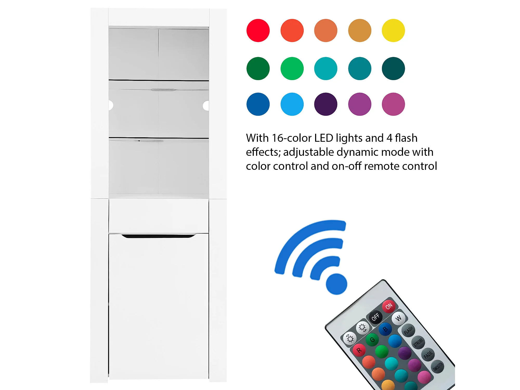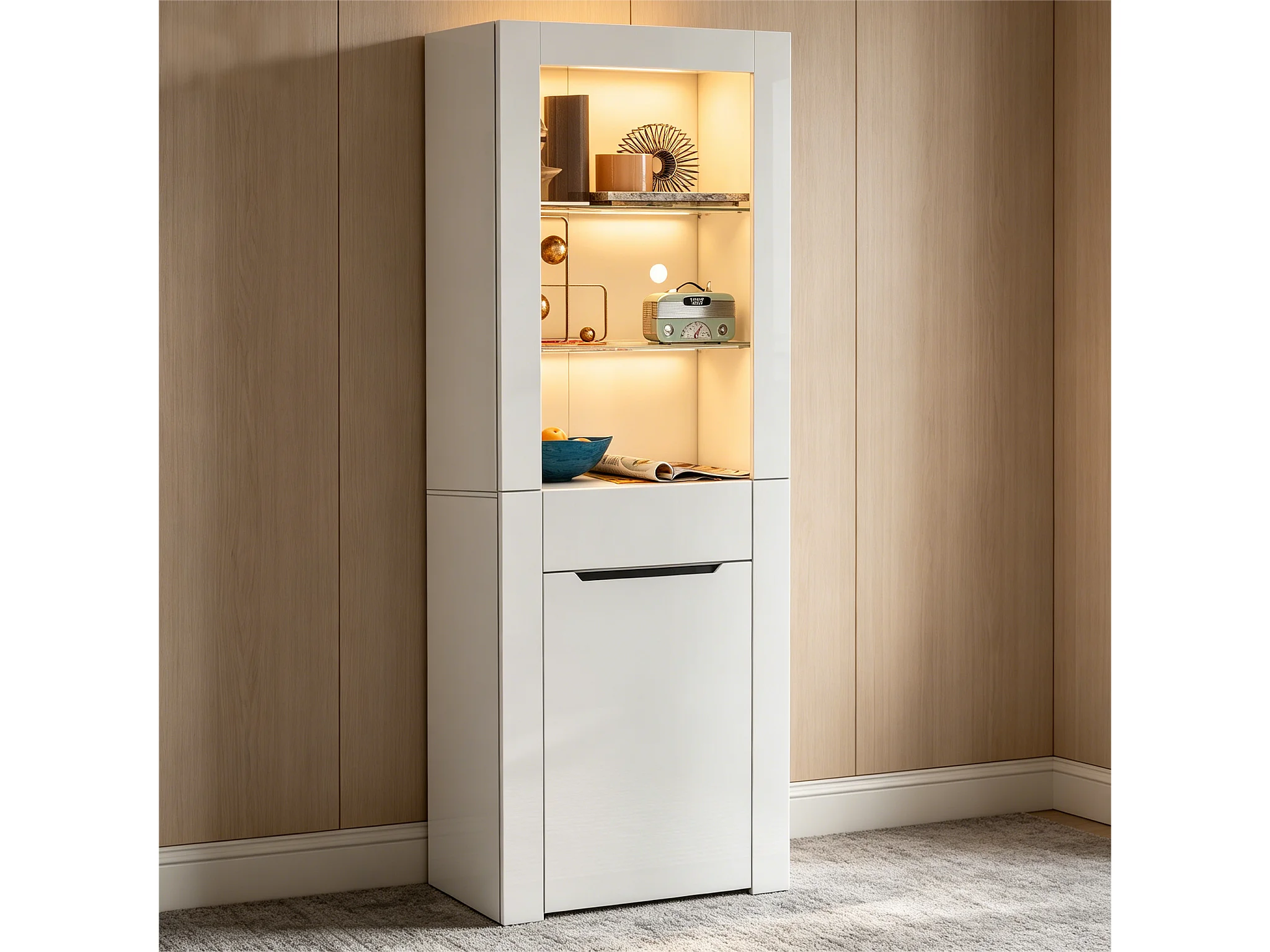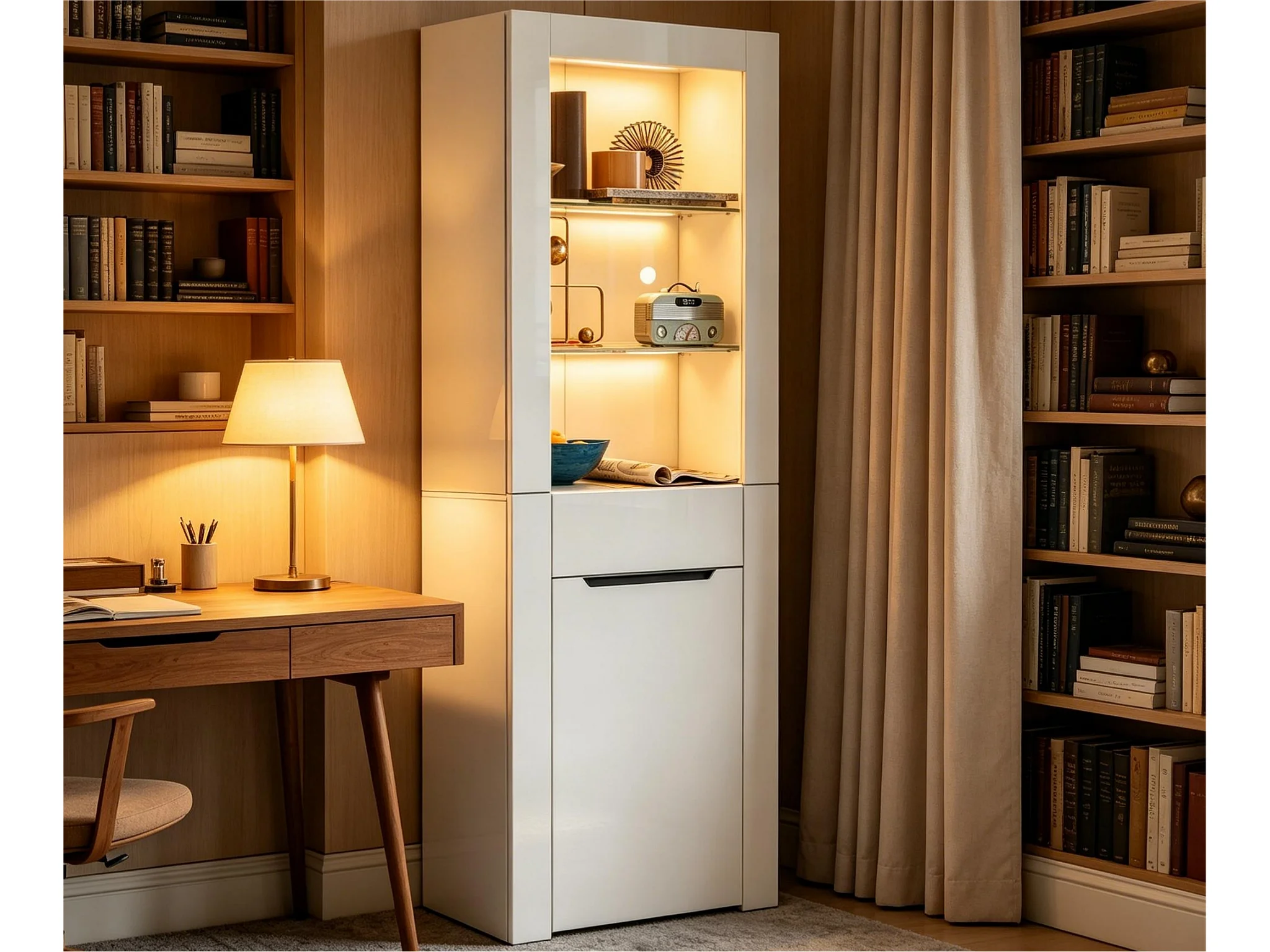 Vitrine avec LED - H 165cm - grand espace de rangement - Blanc