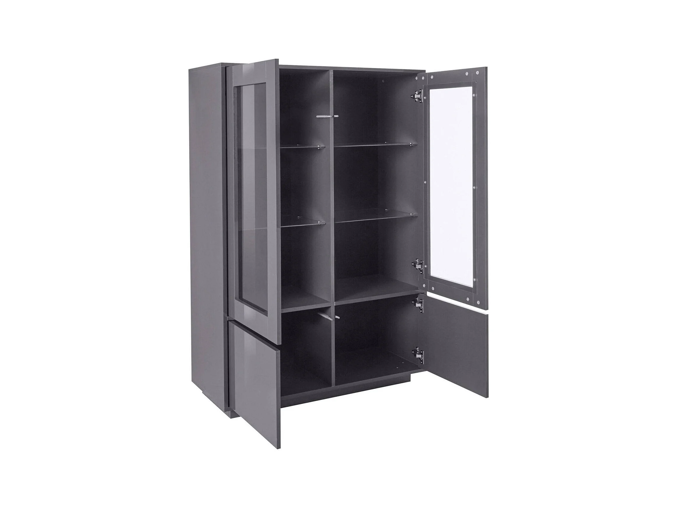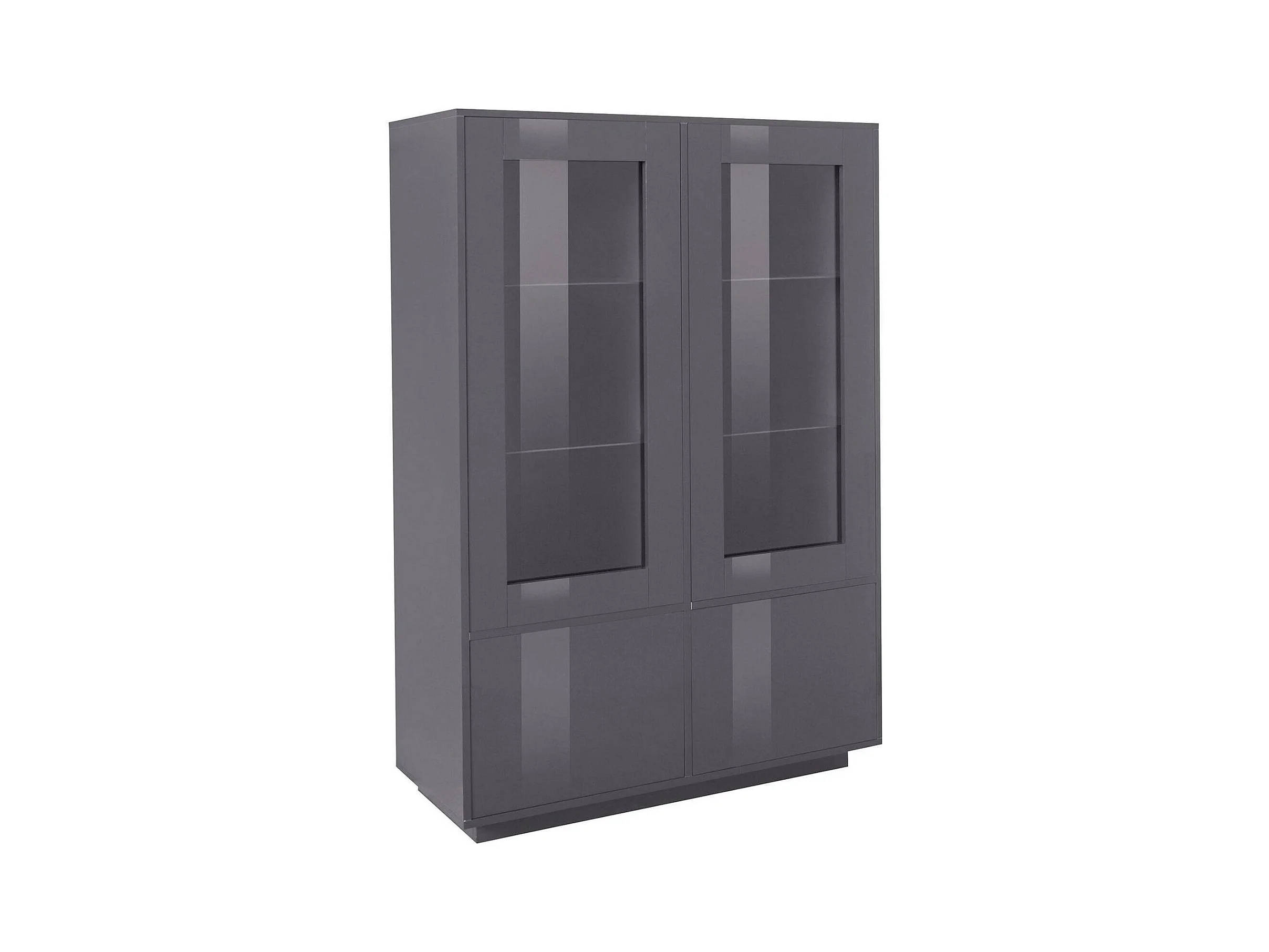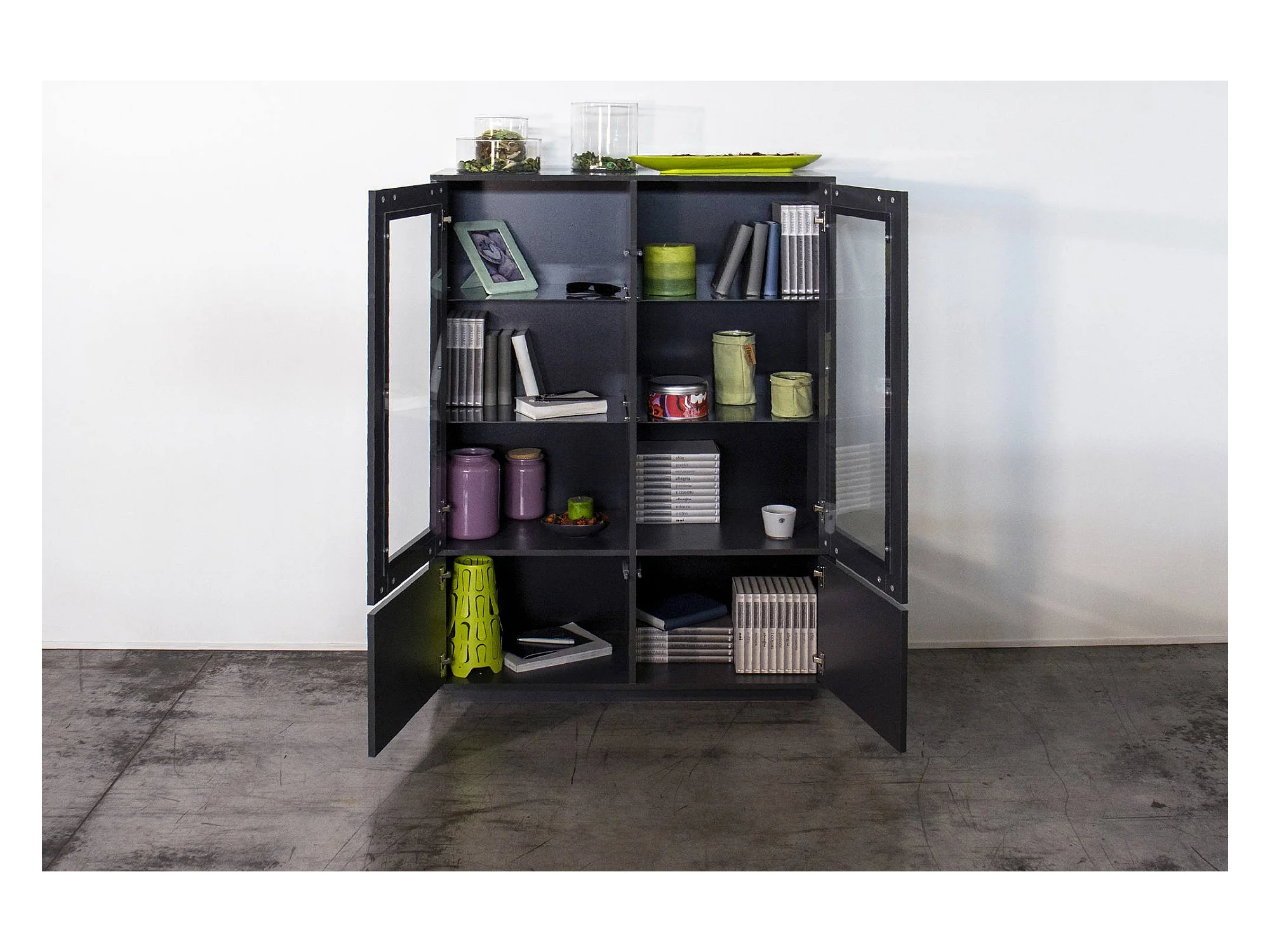 Vitrine Bettino, buffet 4 portes avec étagères en verre, Meuble de salon polyvalent, 100% Made in Italy, 100x41h146 cm, Anthracite Brillant