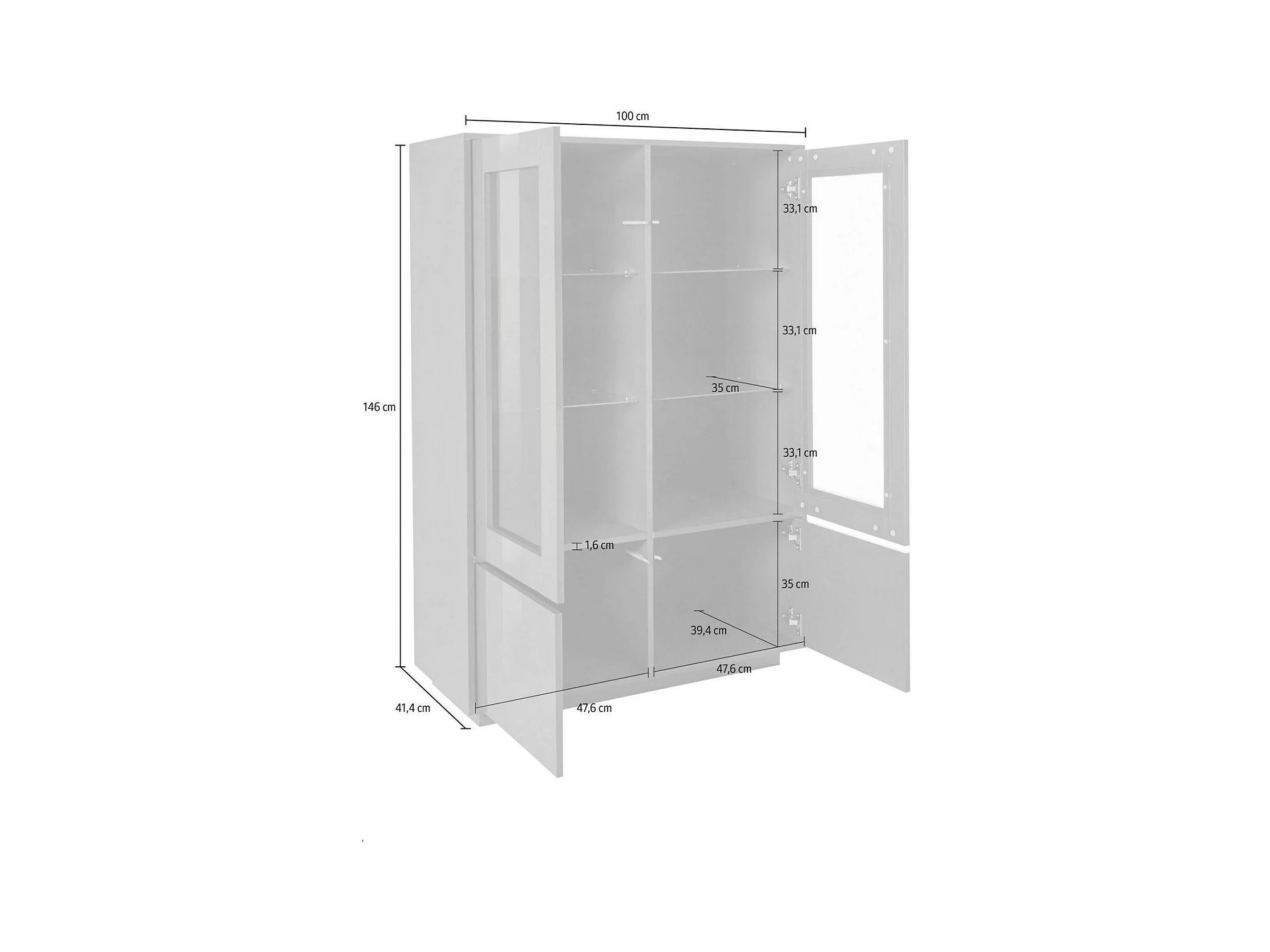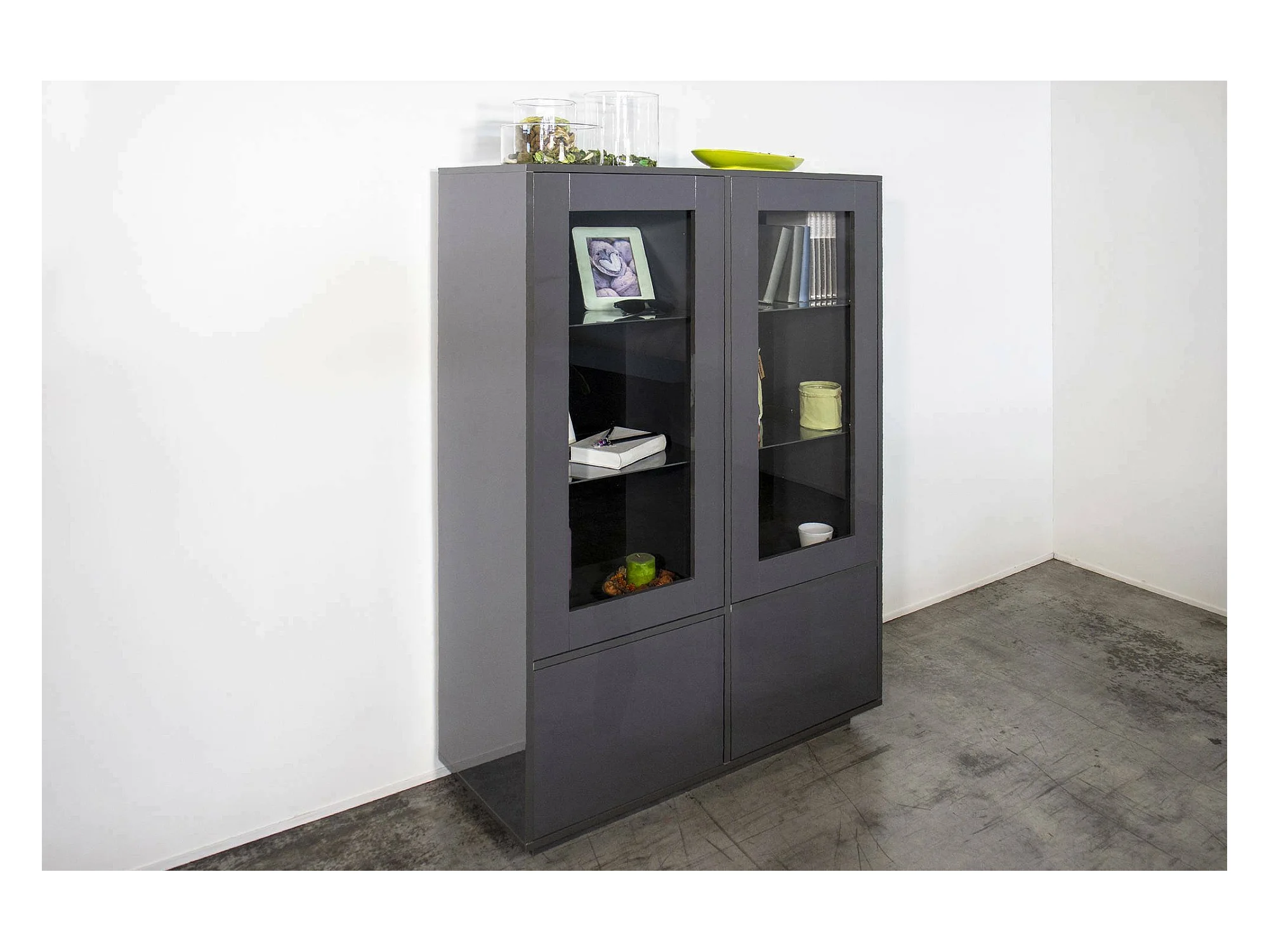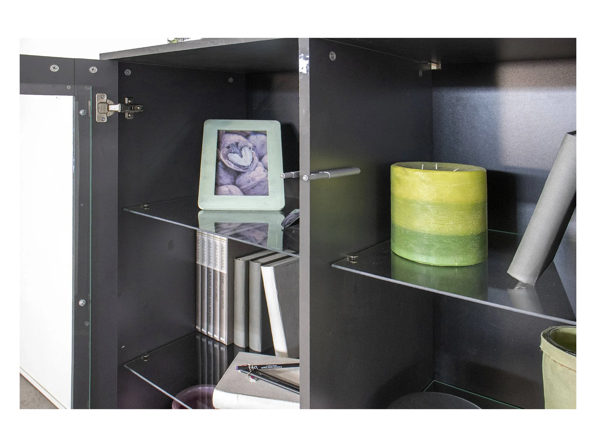 Vitrine Bettino, buffet 4 portes avec étagères en verre, Meuble de salon polyvalent, 100% Made in Italy, 100x41h146 cm, Anthracite Brillant