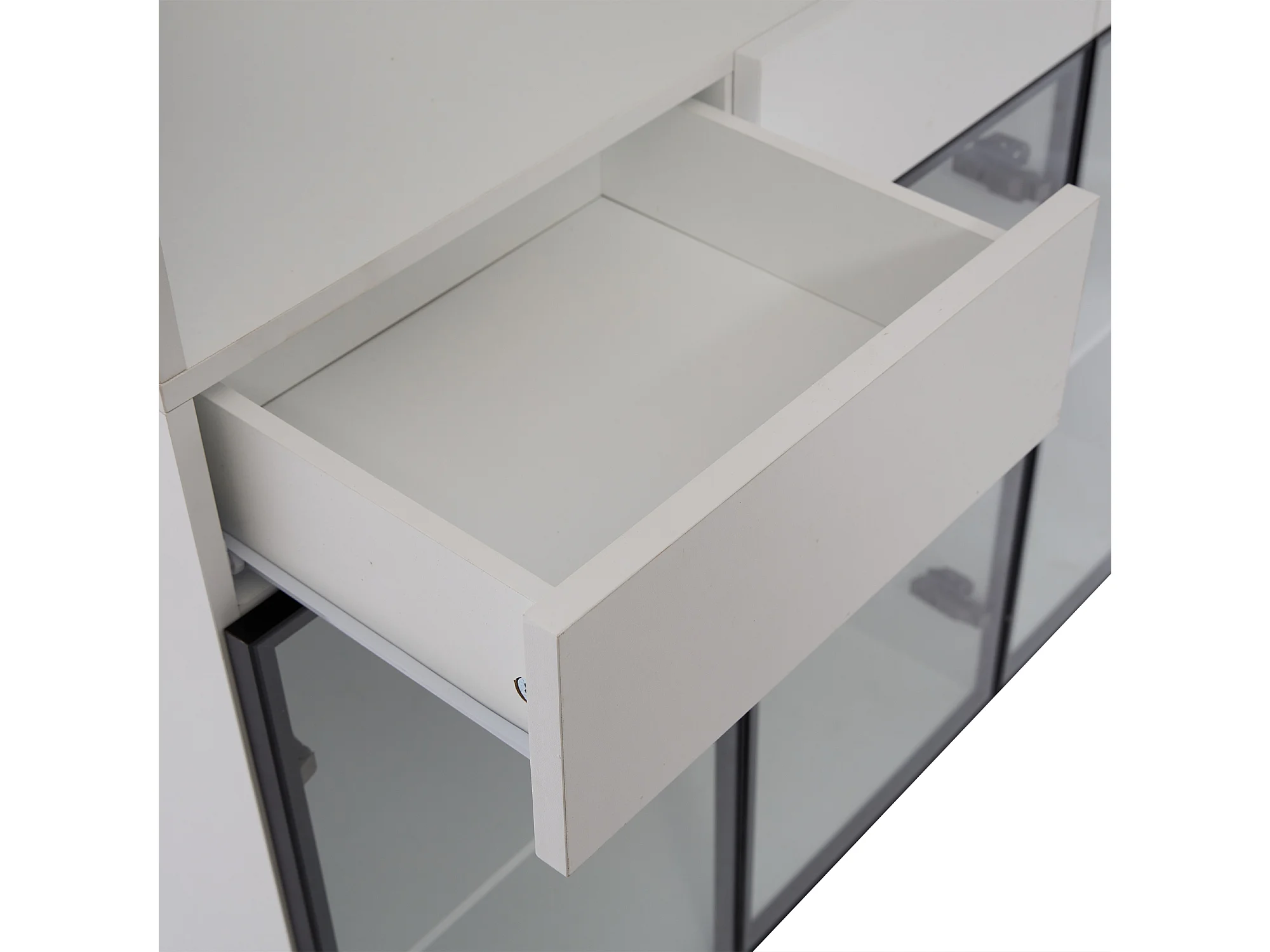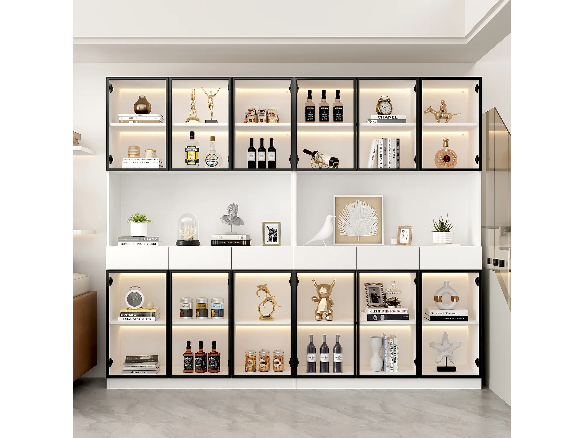 Vitrine 240x36x200cm LED 12 portes vitrées 6 tiroirs et rangement ouvert - meuble de rangement - blanc