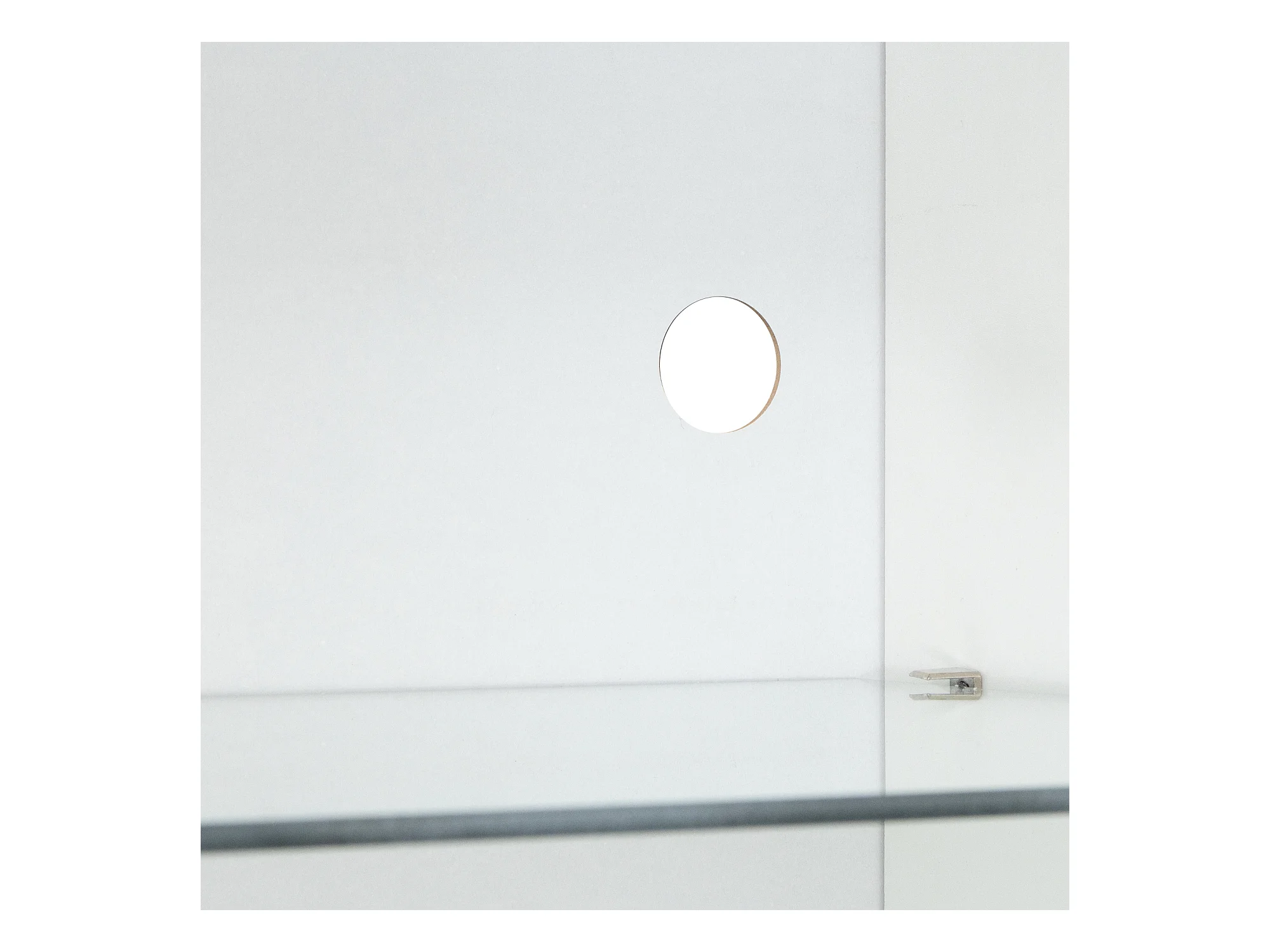 Vitrine blanc avec éclairage LED - Vitrine avec 2 portes vitrées et 2 portes en bois - 1 tiroir et rangement ouvert