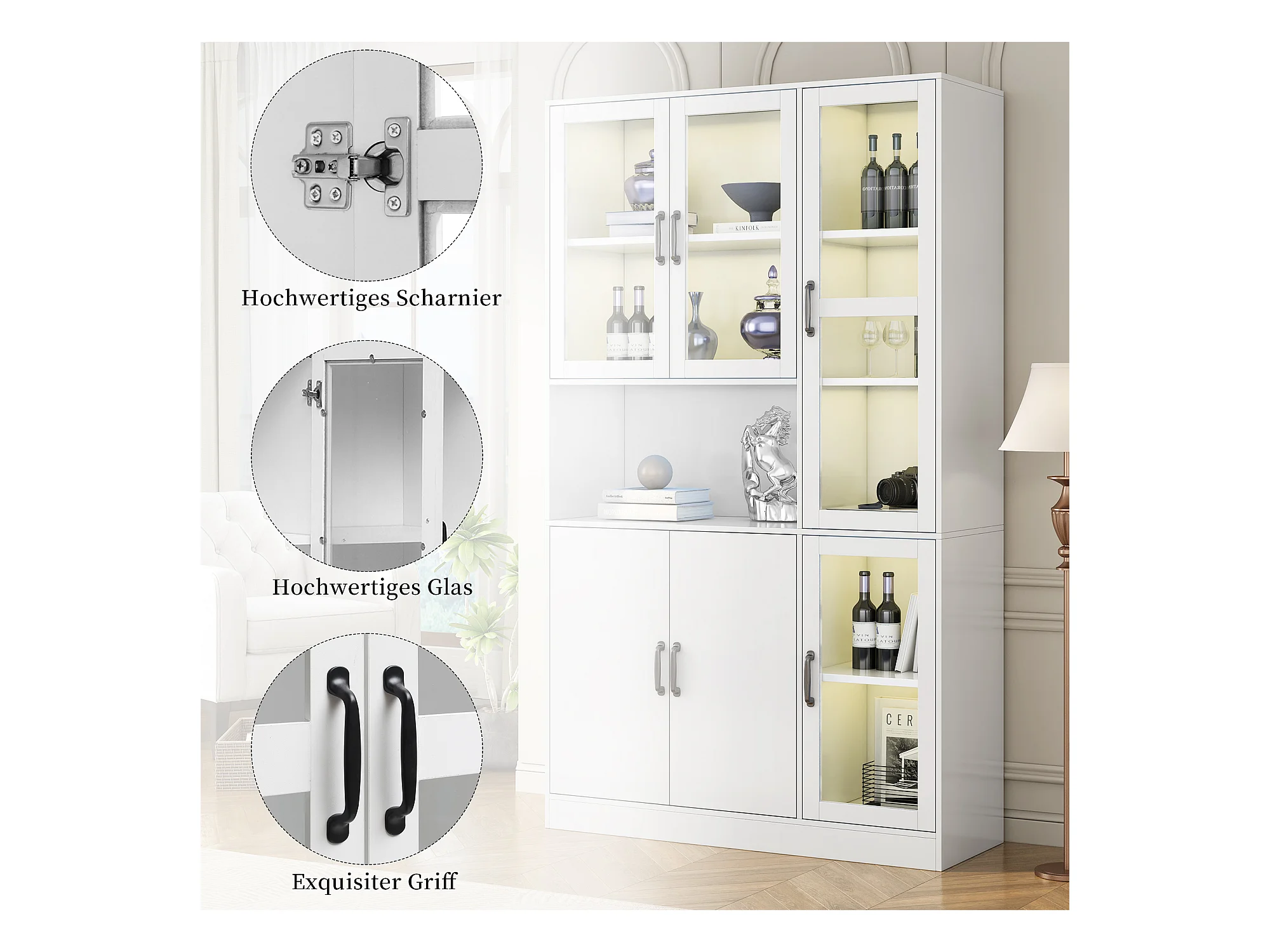 Vitrine en Verre avec LED, 2 Portes, Étagères Réglables, MDF, Blanc, (80x40x160 cm + 70x35x150 cm)