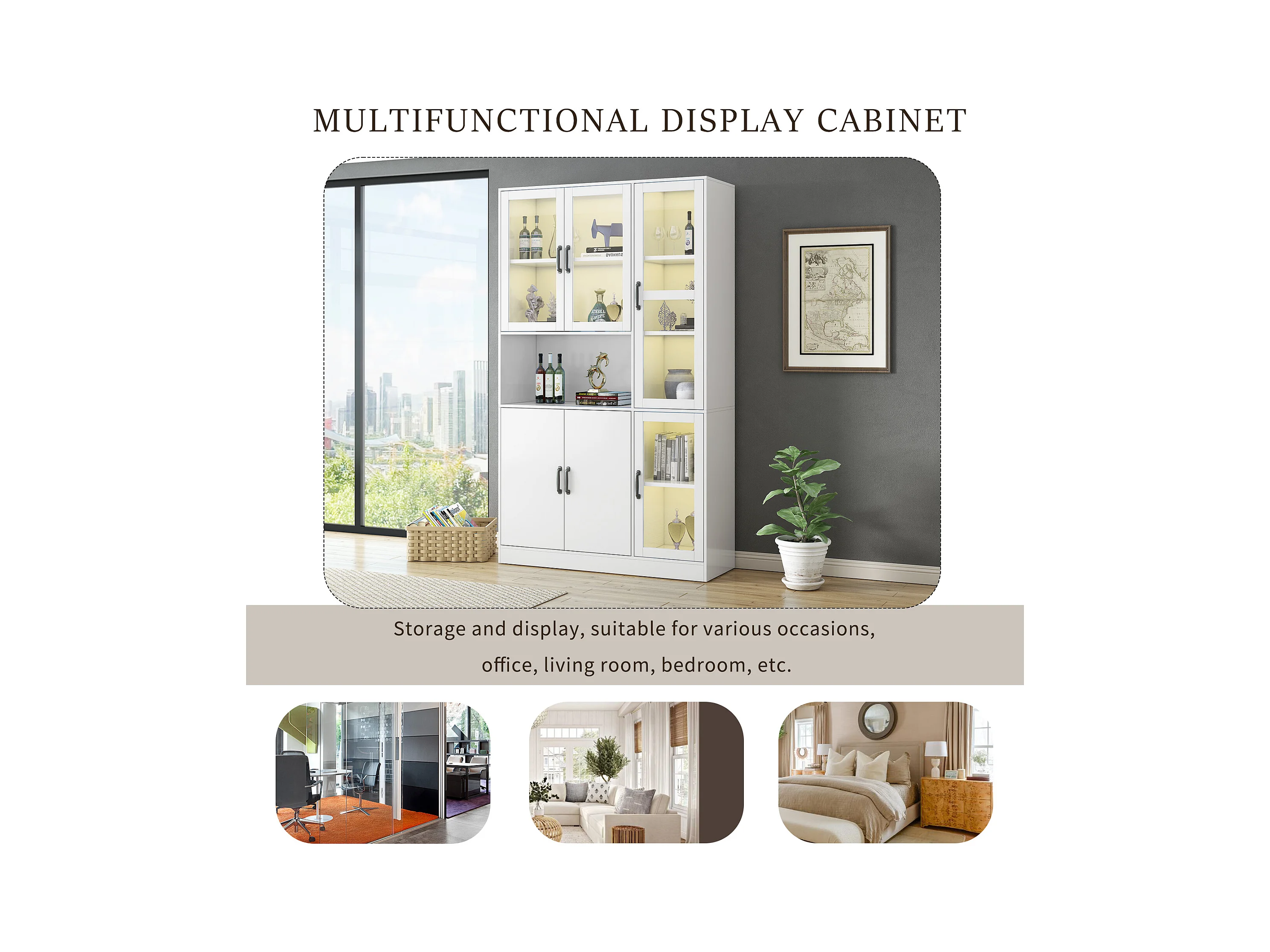 Vitrine blanche avec LED, 9 espaces de rangement, MDF, blanc (120x40x200 cm)