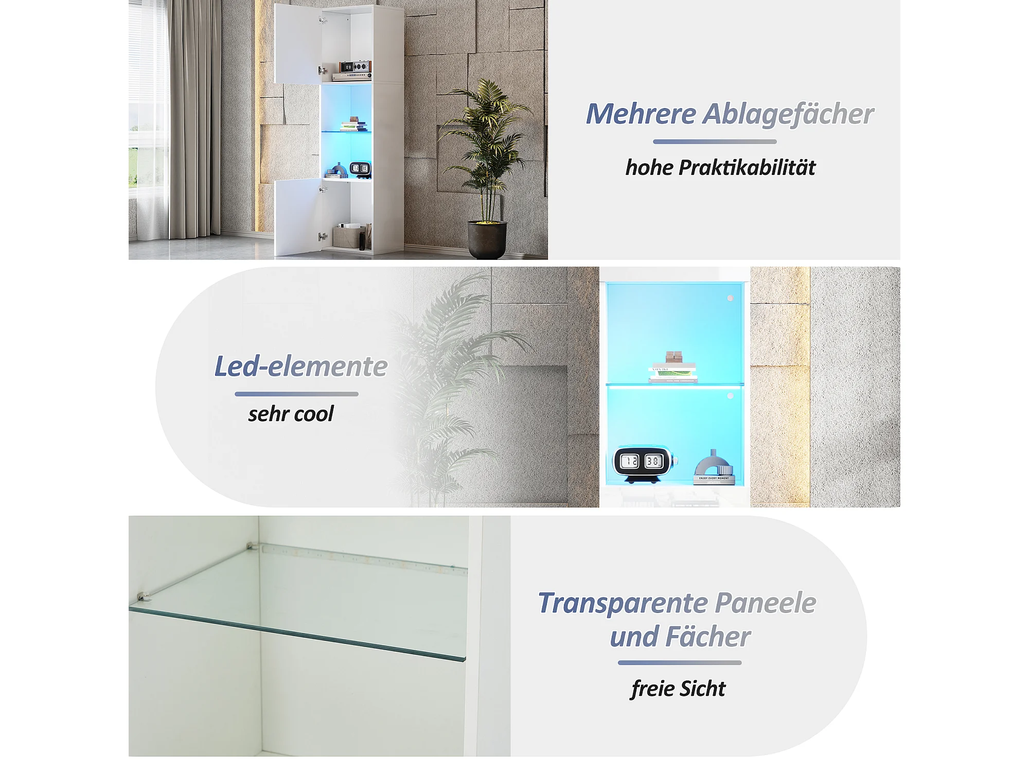 Vitrine LED avec 16 couleurs, design moderne, panneau de particules, blanc (59.5x35x182 cm)